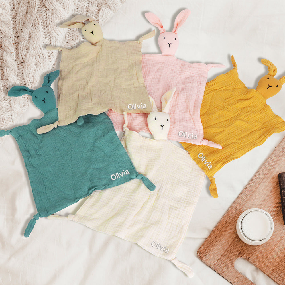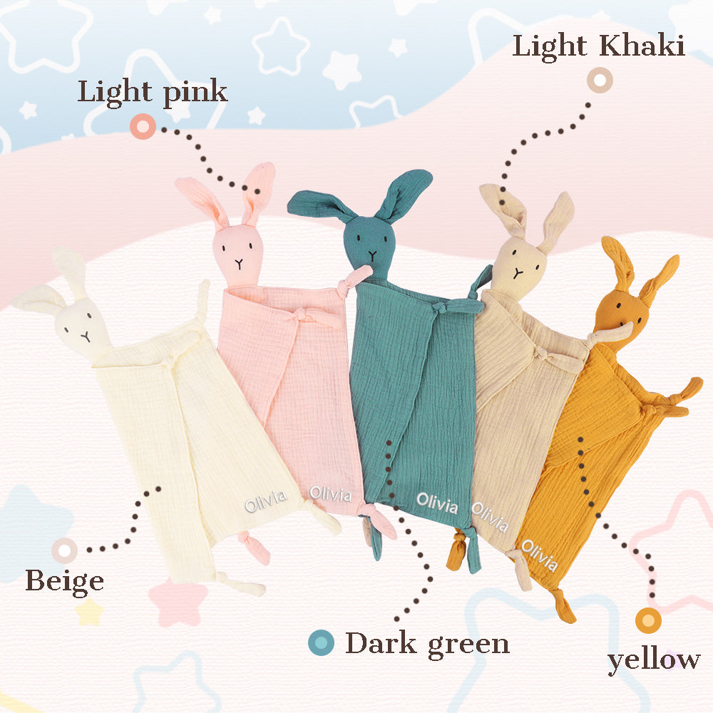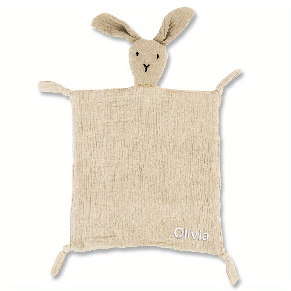 Manta de muselina personalizada para bebé con conejito en rosa, amarillo, beige, azul, marrón claro, suave, transpirable, regalo