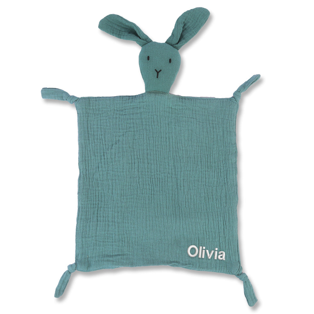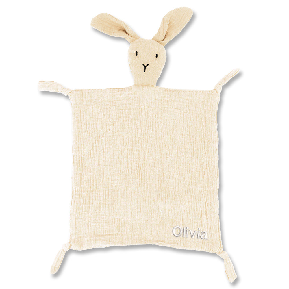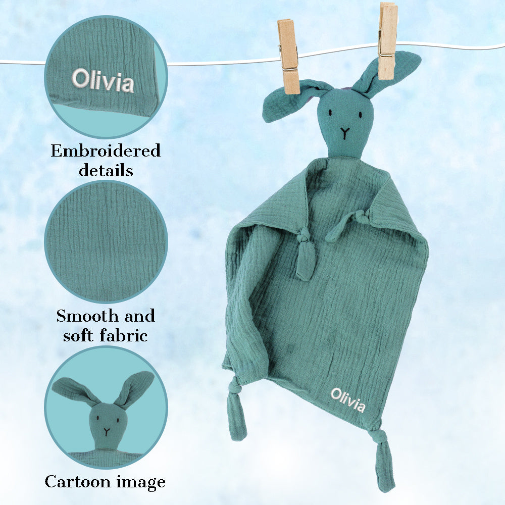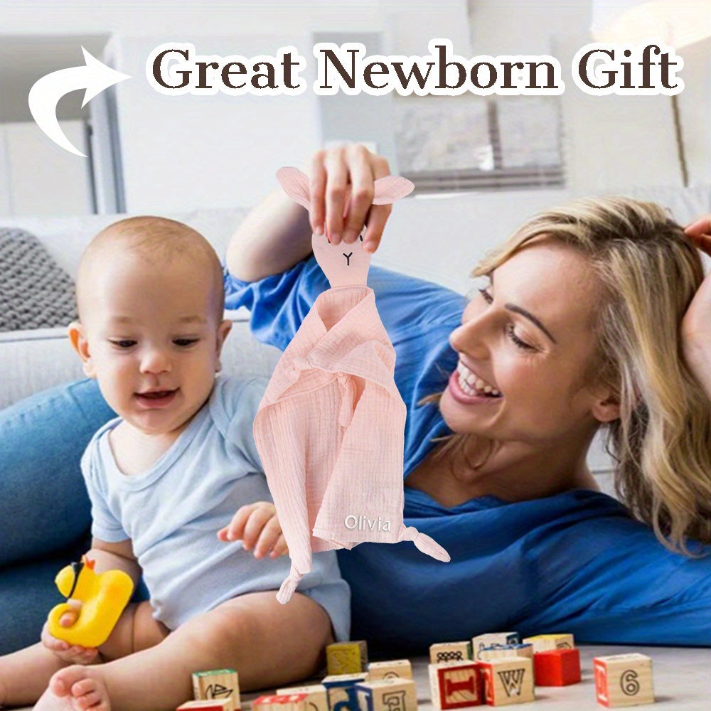 Manta de muselina personalizada para bebé con conejito en rosa, amarillo, beige, azul, marrón claro, suave, transpirable, regalo