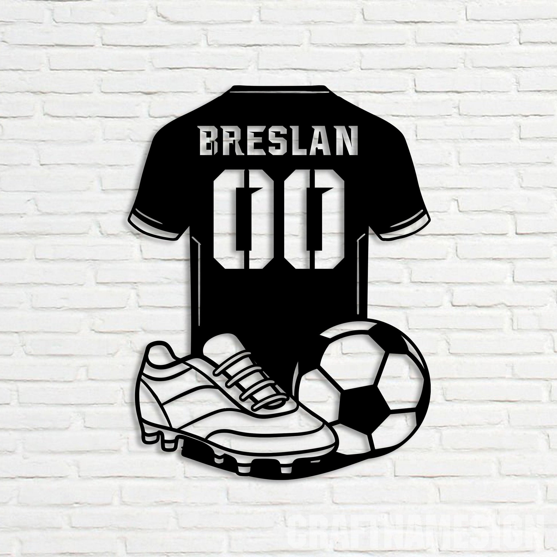 Señal de silueta de fútbol en metal negro personalizada para jardín y decoración exterior en casa