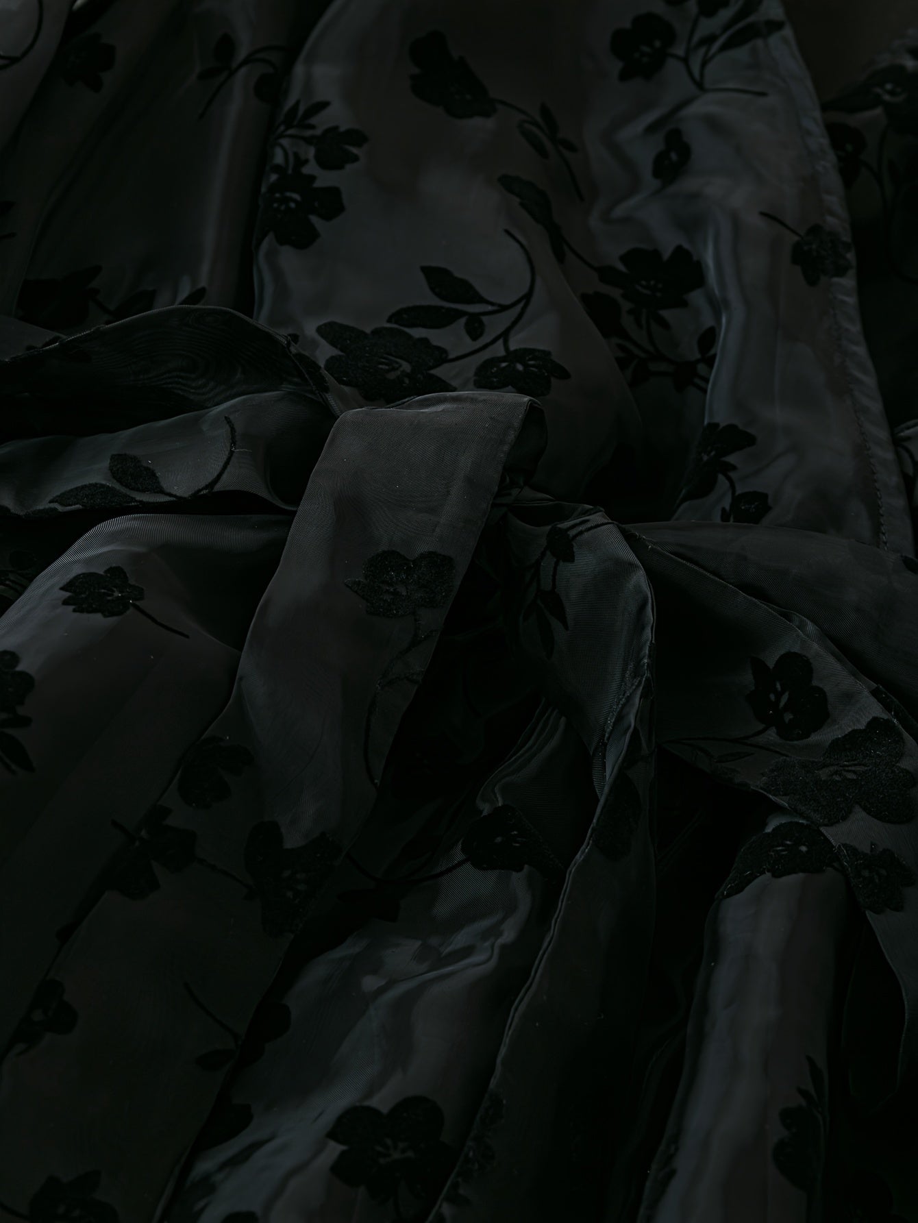 Vestido de talla grande con patrón floral, cinturón, mangas largas y escote en forma de surplice