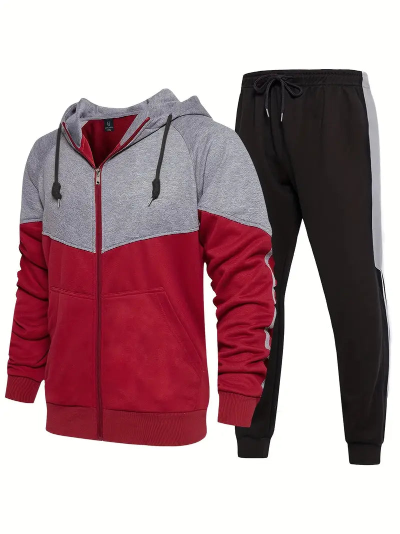 Conjunto de sudadera y jogger de color block para hombre talla grande de poliéster, casual para otoño e invierno