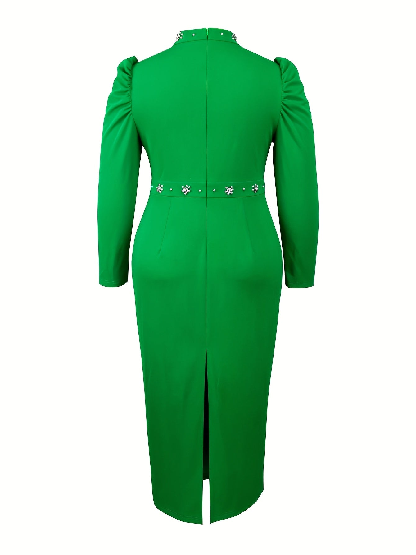 Plus Size Women's Beaded Long Sleeve Mermaid Evening Gown V-Neck Banquet Dress