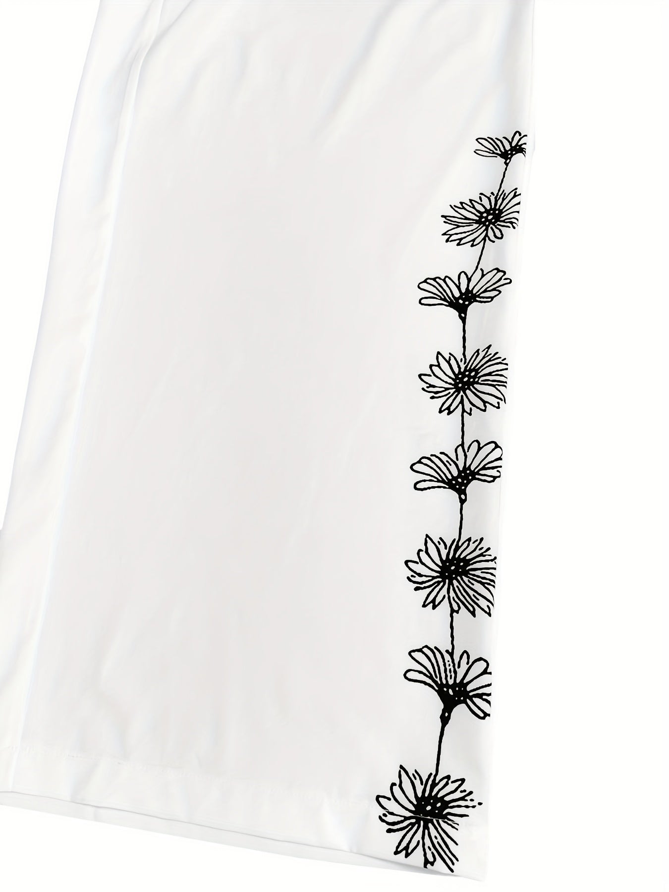Pantalones harem de talla grande para mujer con estampado de diente de león en negro y bolsillos