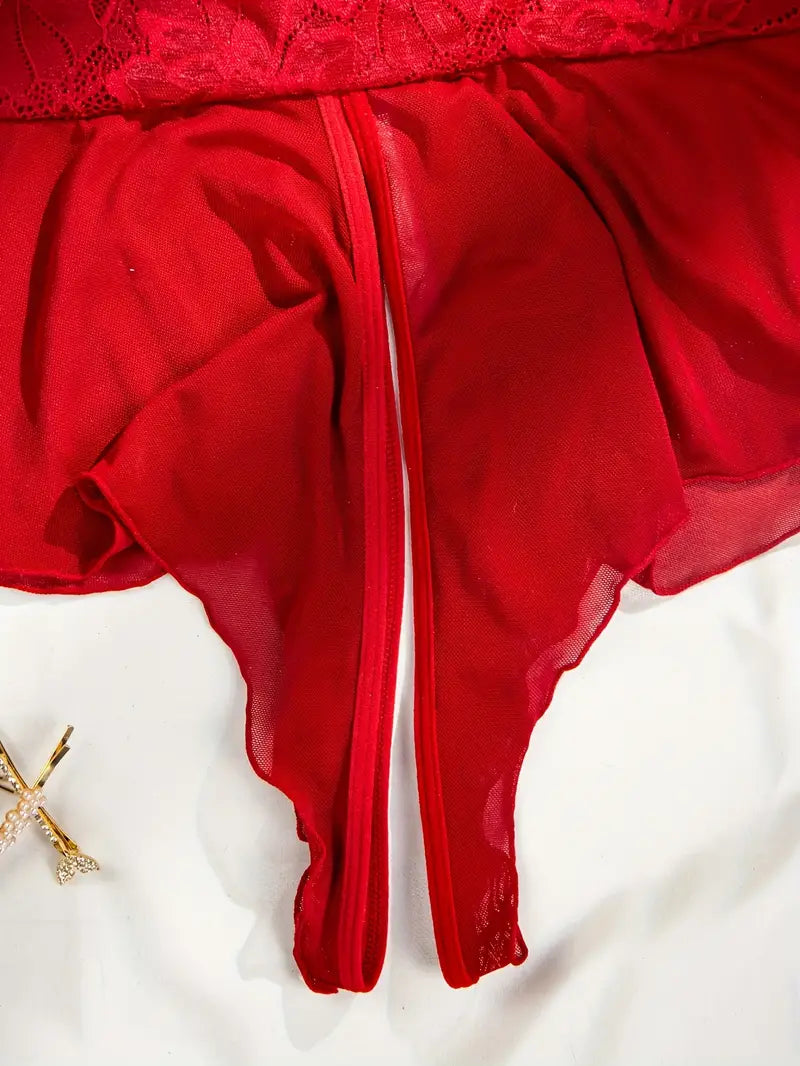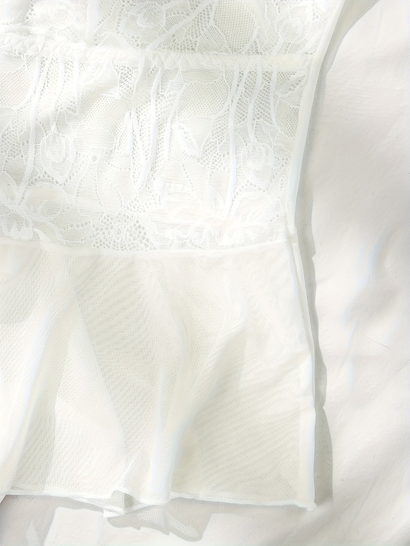 Mono ajustado de talla grande para mujer con encaje en contraste y escote en V profundo