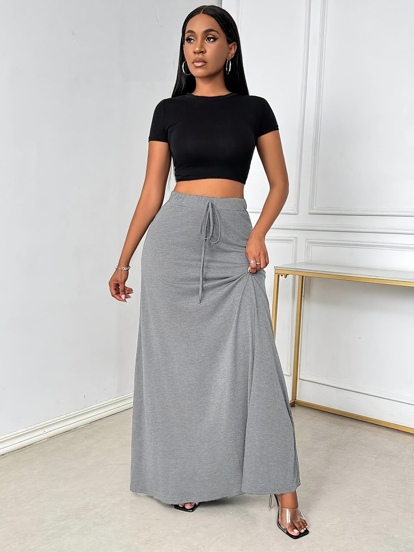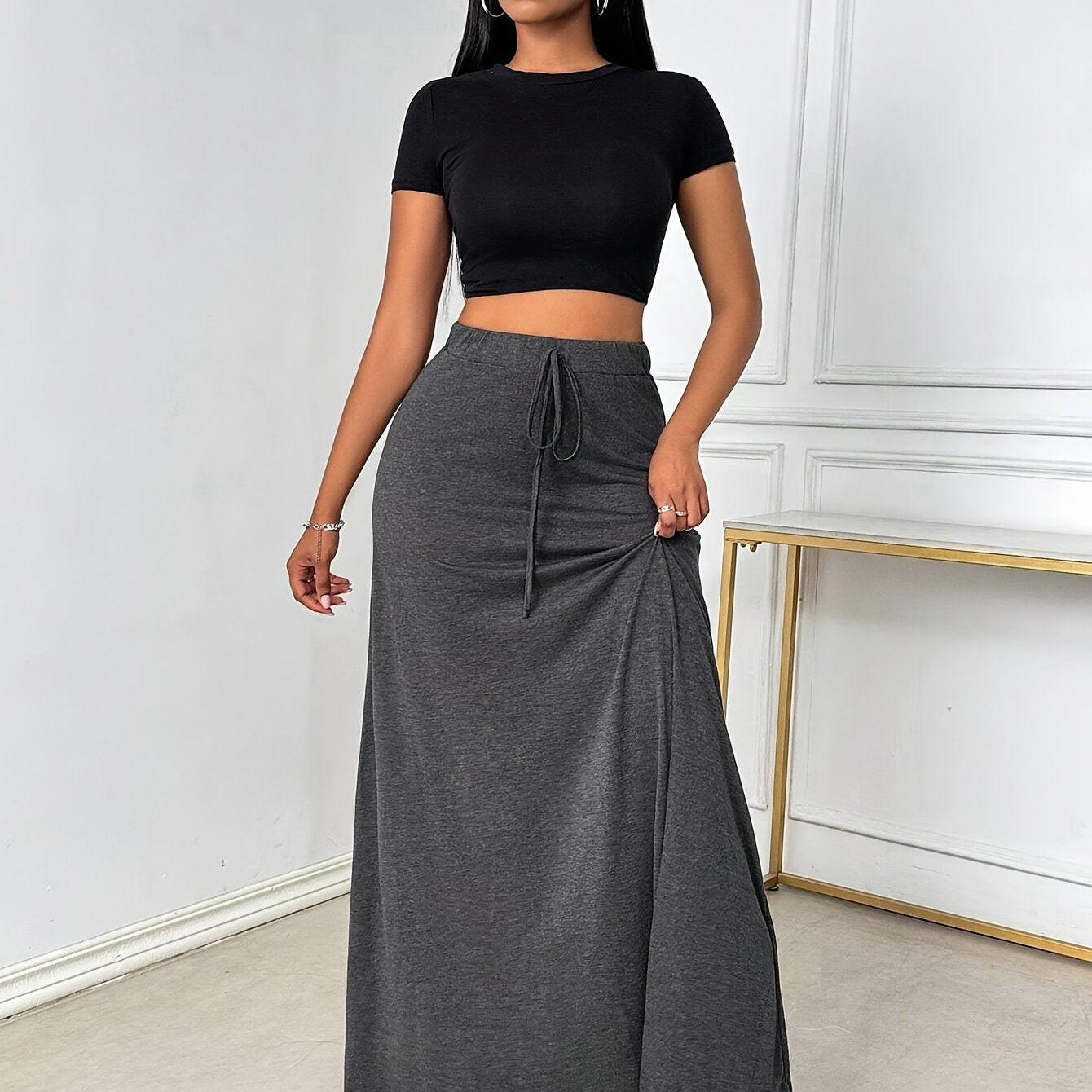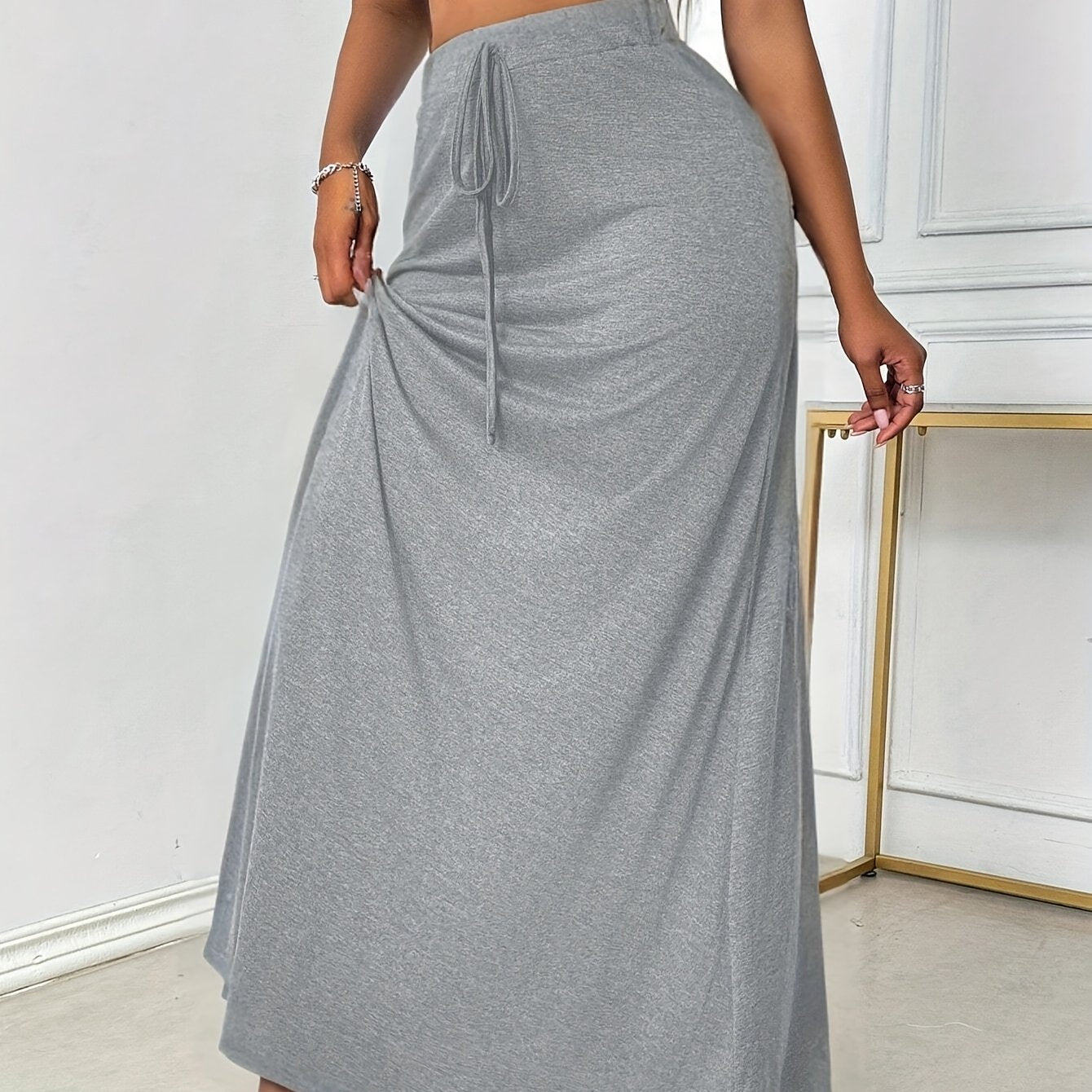 Falda larga de mujer de talla grande en gris carbón, de cintura alta, que estiliza, casual
