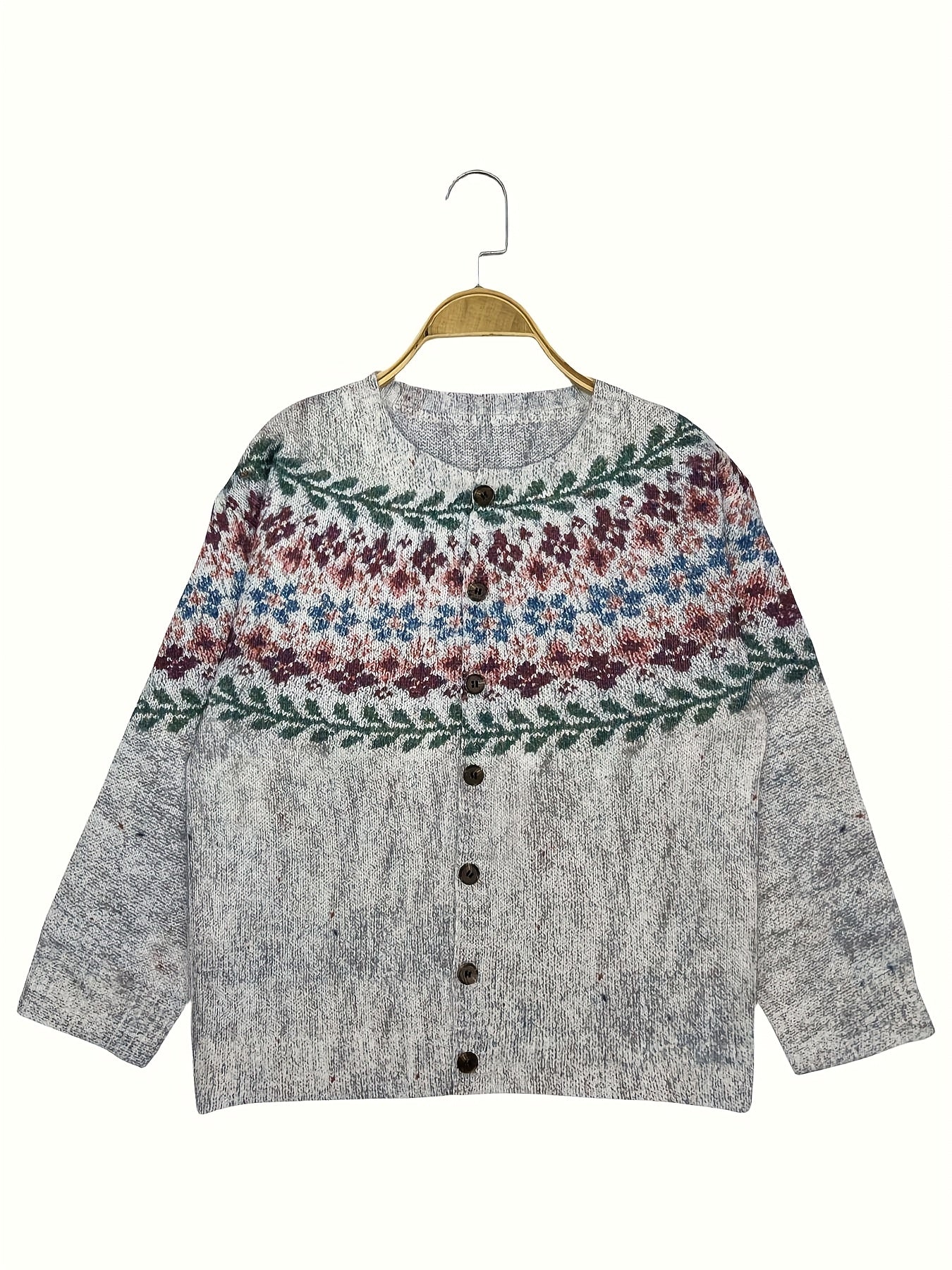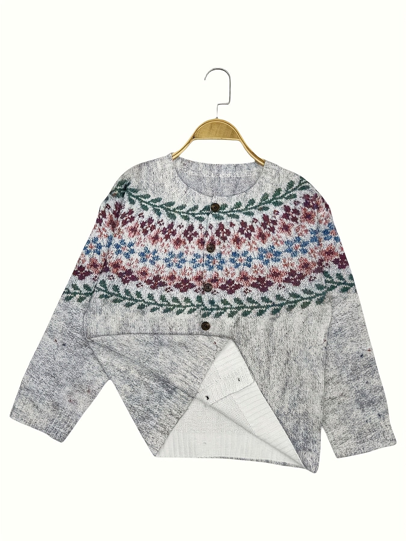 Cárdigan de talla grande para mujer, suéter de manga larga con estampado floral y abrigo