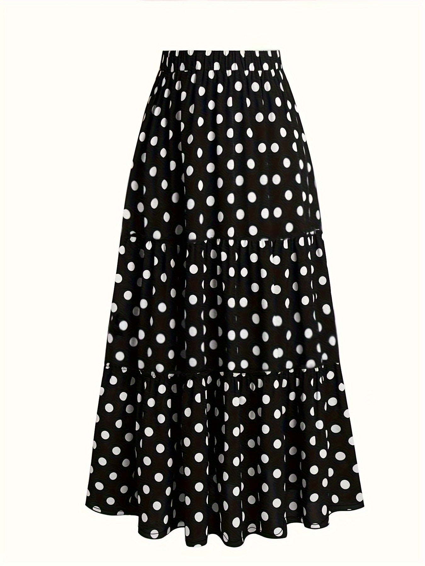 Falda larga de lunares en tallas grandes para mujer, en poliéster no elástico, casual, para primavera, verano y otoño