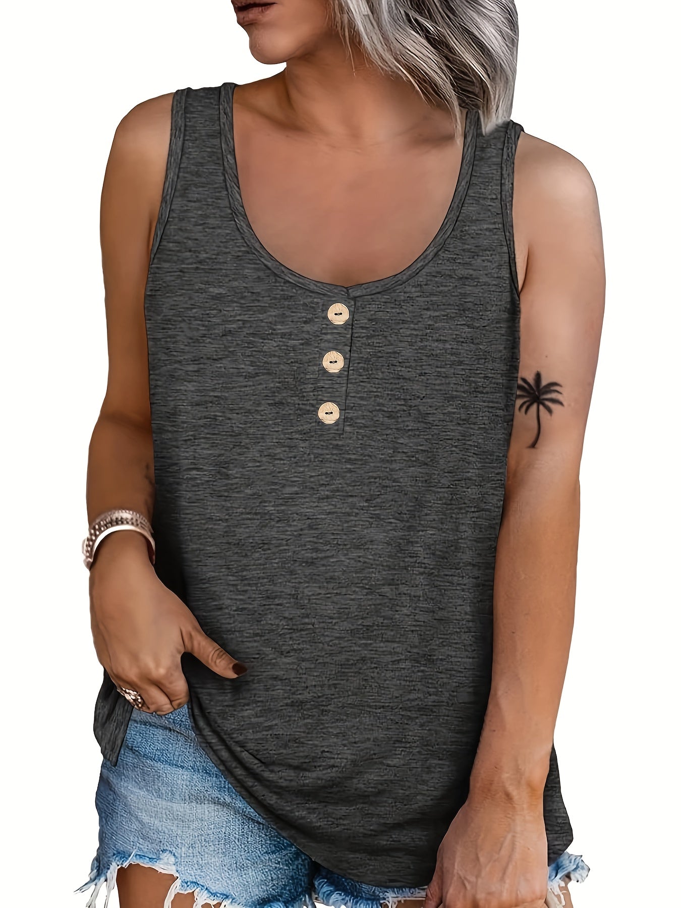 Top de verano sin mangas para mujer de talla grande, casual, con botones en el frente y color sólido