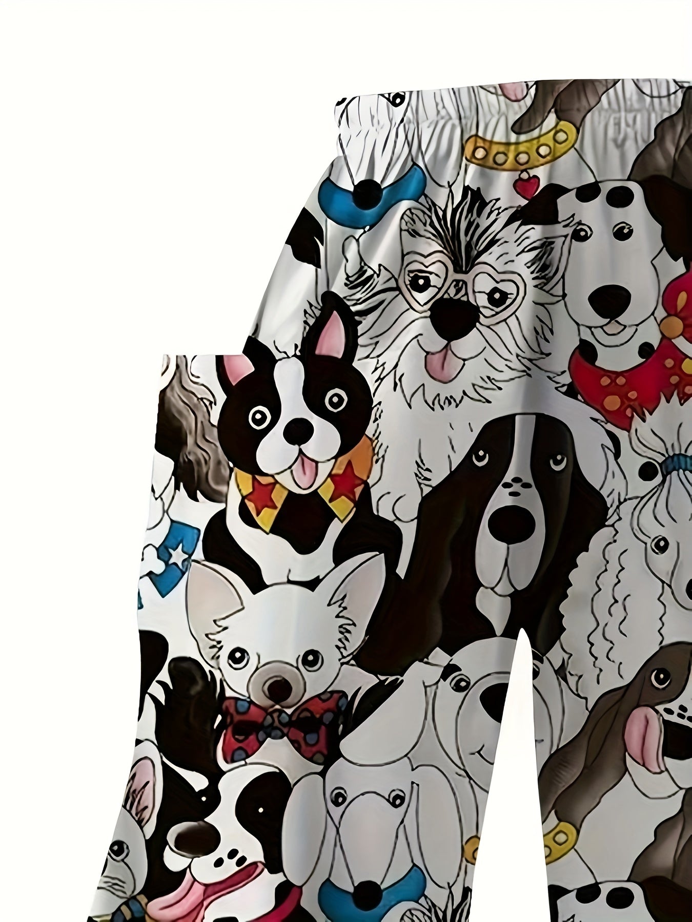 Pantalones anchos de mujer de talla grande con estampado de perros, pantalones casuales de poliéster con cintura elástica