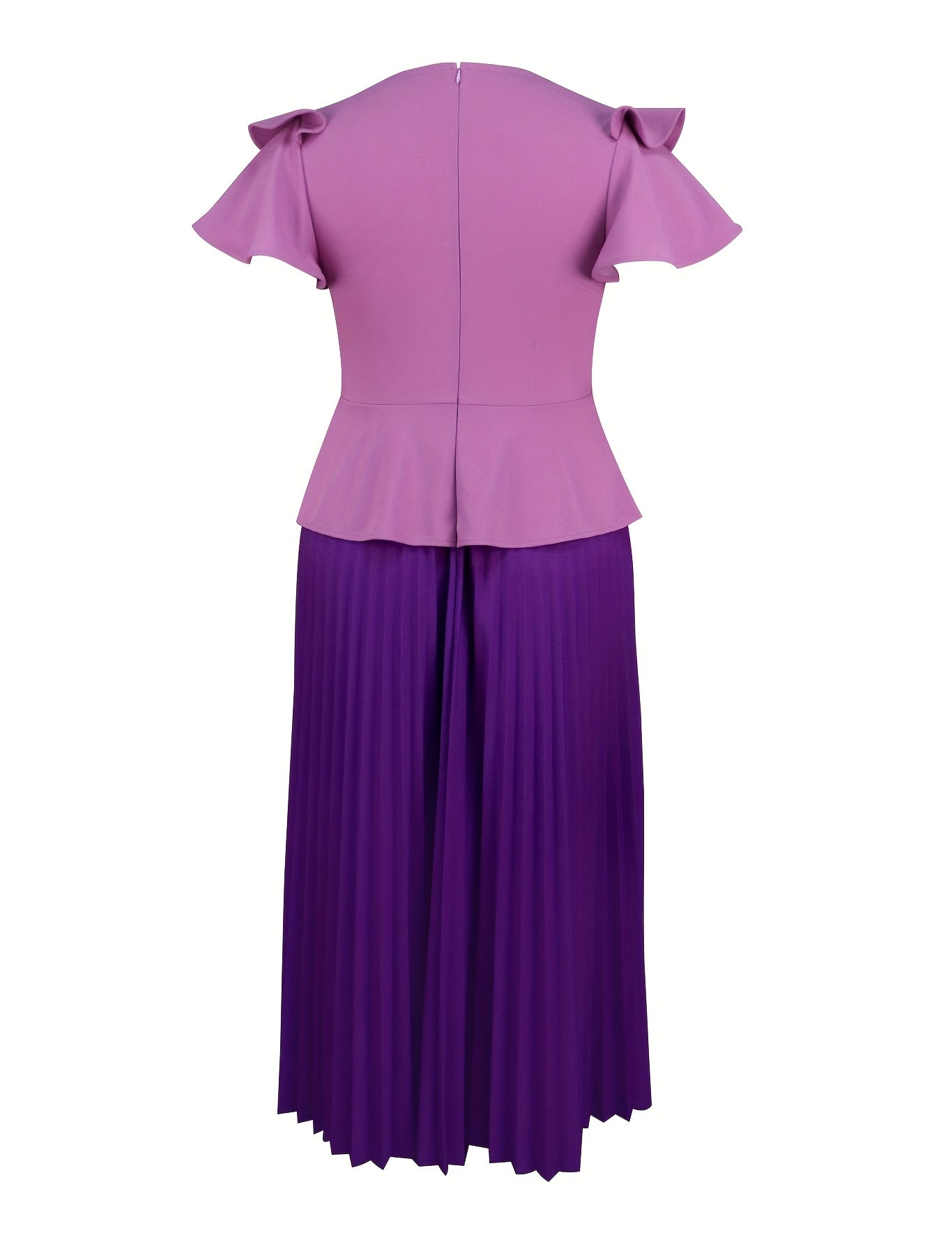 Plus Size Women's Elegant Pleated A-Line Party Dress Color Block