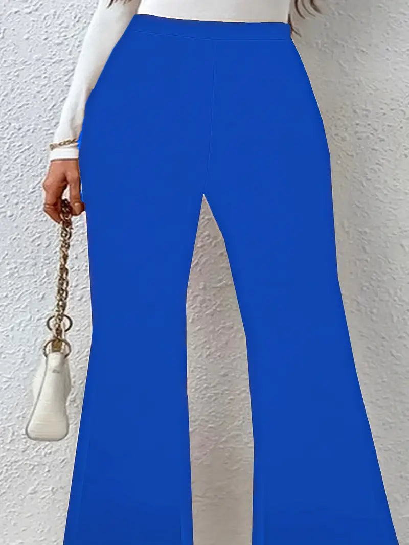 Pantalones de mujer de talla grande con pata ancha y acampanada, pantalones grises con elastano