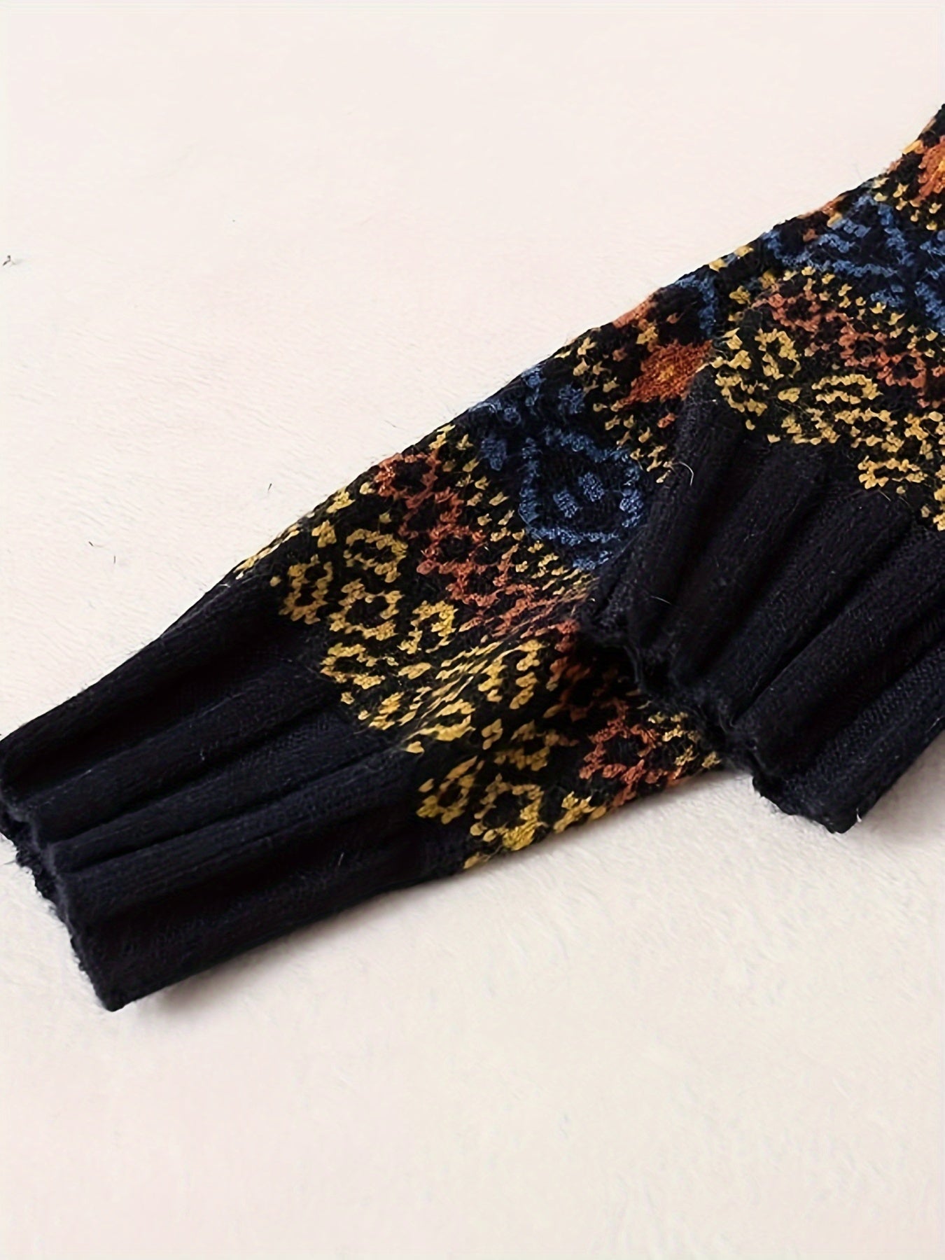 Suéter de talla grande para mujer con patrón geométrico, manga larga, cuello alto y estilo pullover