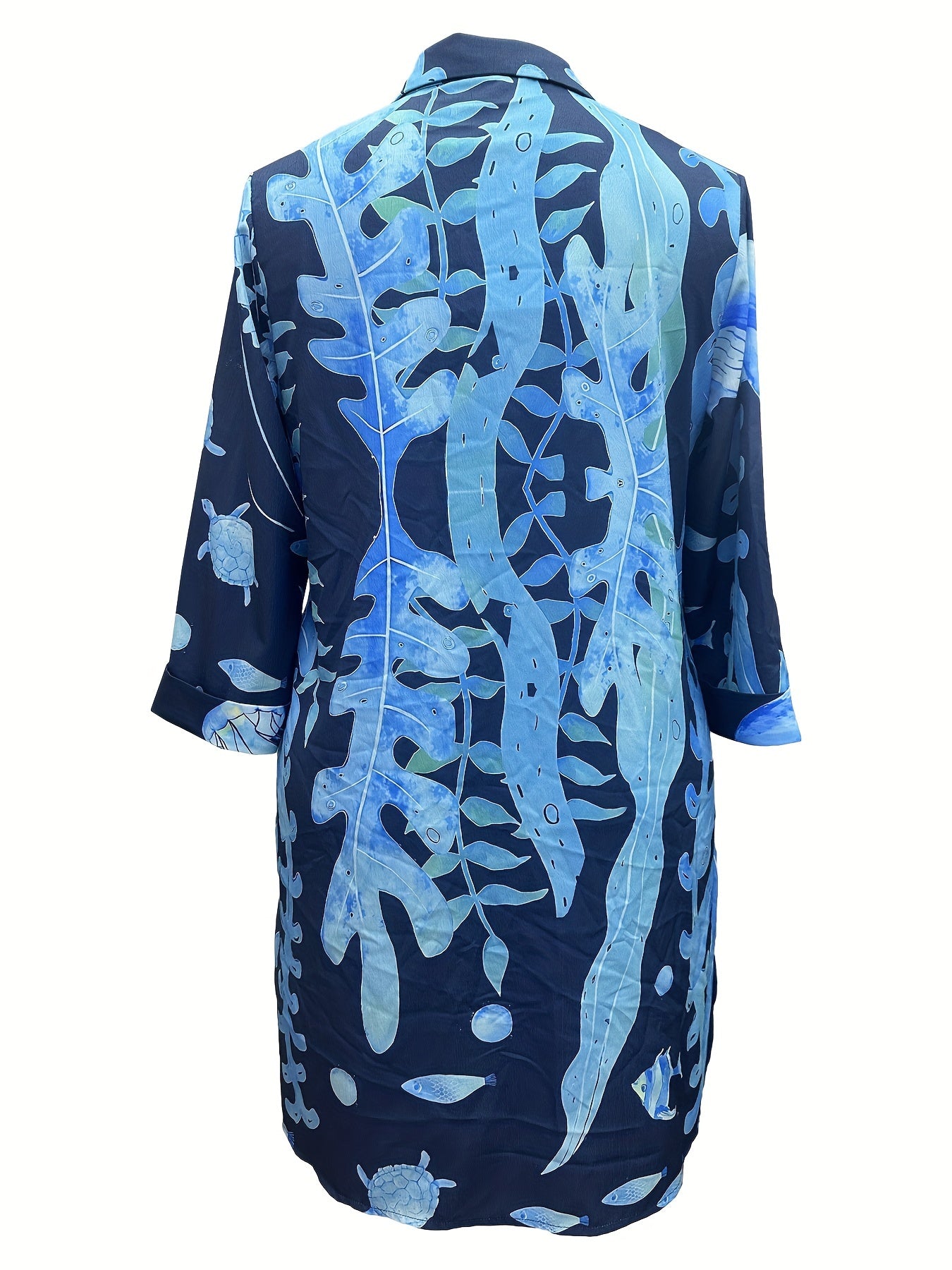 Camisa de manga larga para mujer de tallas grandes con estampado de pez acuático y diseño cómodo