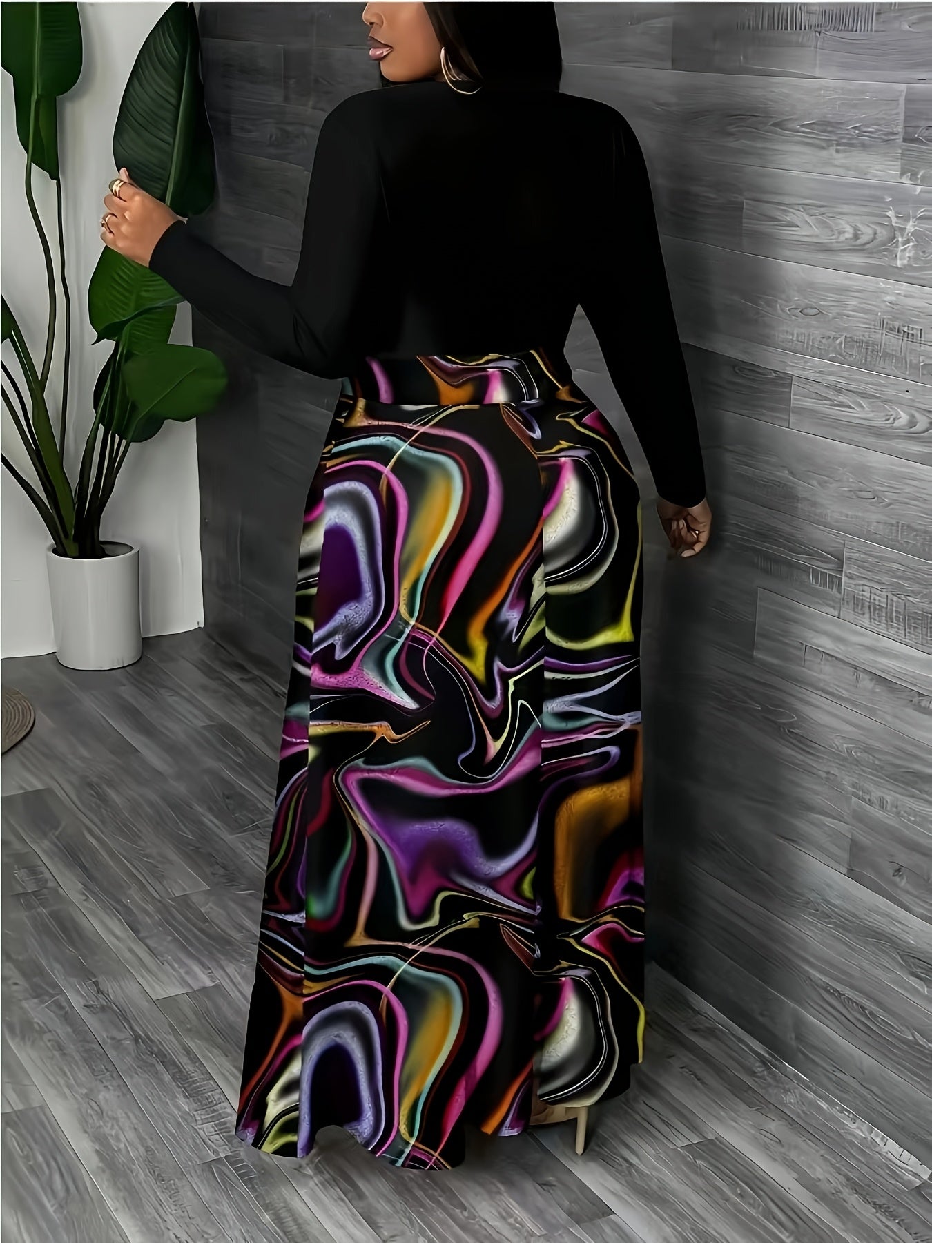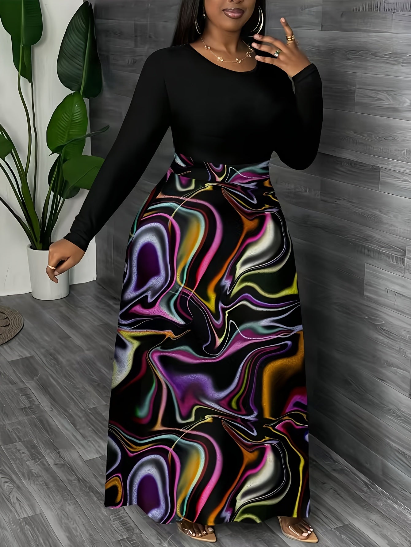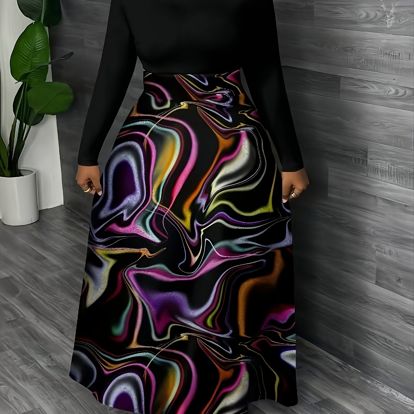 Falda larga de talla grande para mujer de cintura alta con patrón abstracto