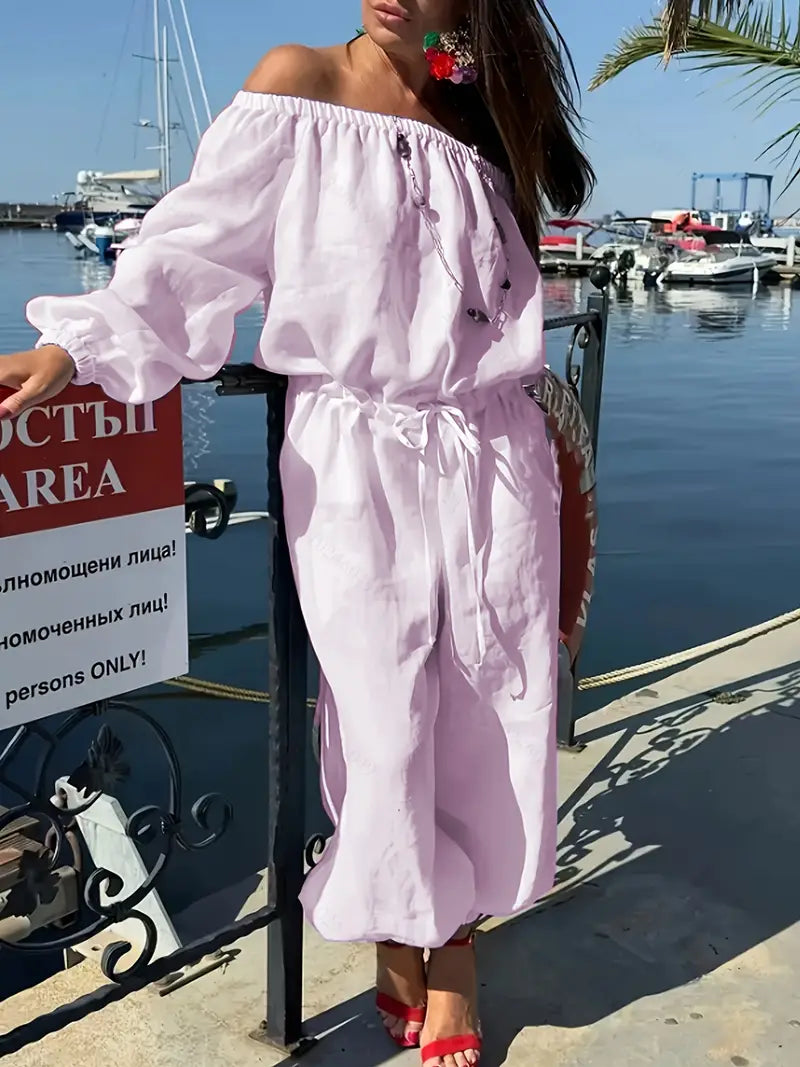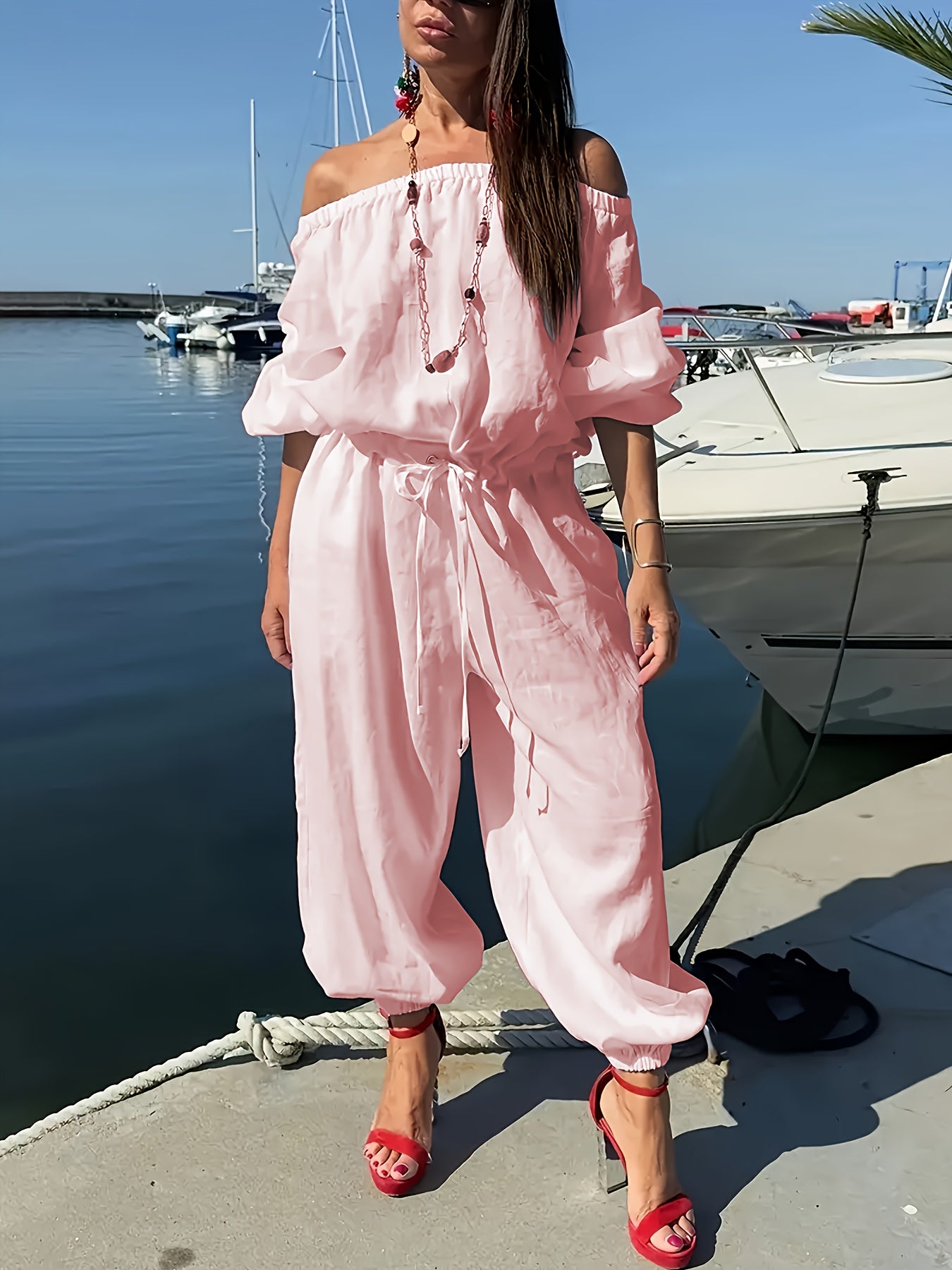 Mono de mujer de talla grande con hombros descubiertos y pantalón ancho, transpirable y casual para verano
