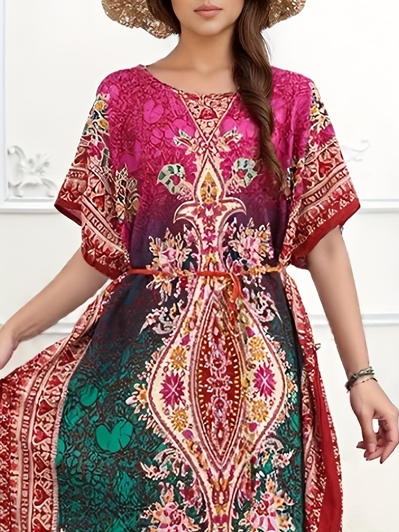 Vestido caftán de tallas grandes para mujer Ramdan con estampado geométrico vibrante, corte suelto y túnica