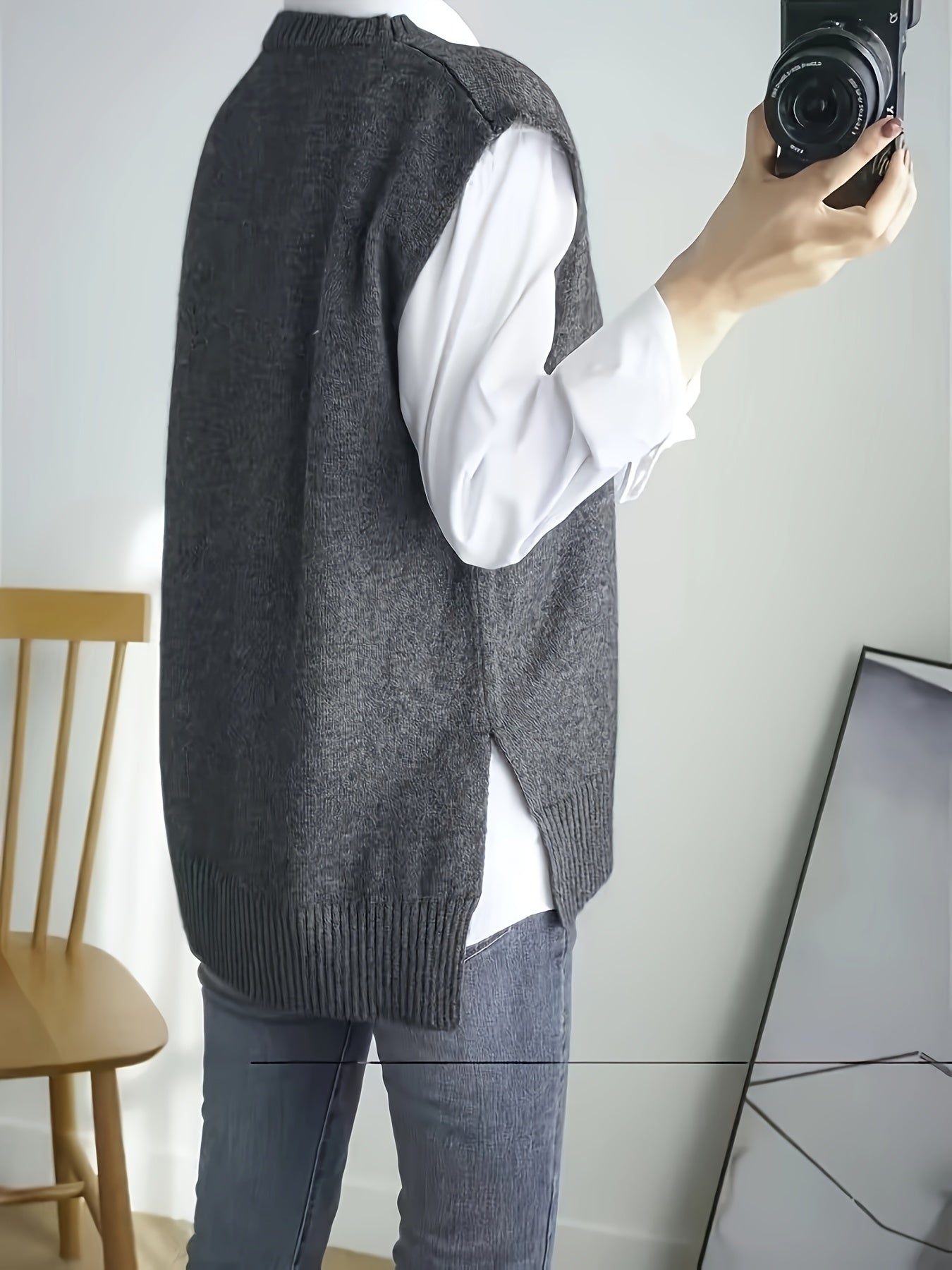 Chaleco de punto acanalado sin mangas para mujer talla grande, casual, verano, abertura frontal, color sólido