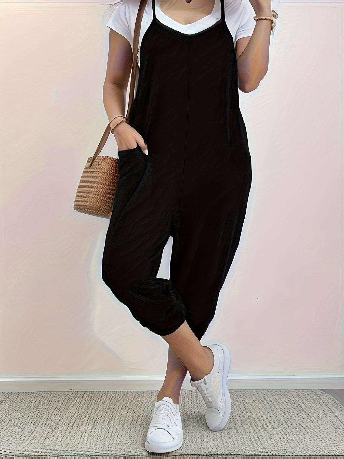 Mono sin mangas de talla grande para mujer con escote en V y bolsillos, ligero y transpirable, de color sólido