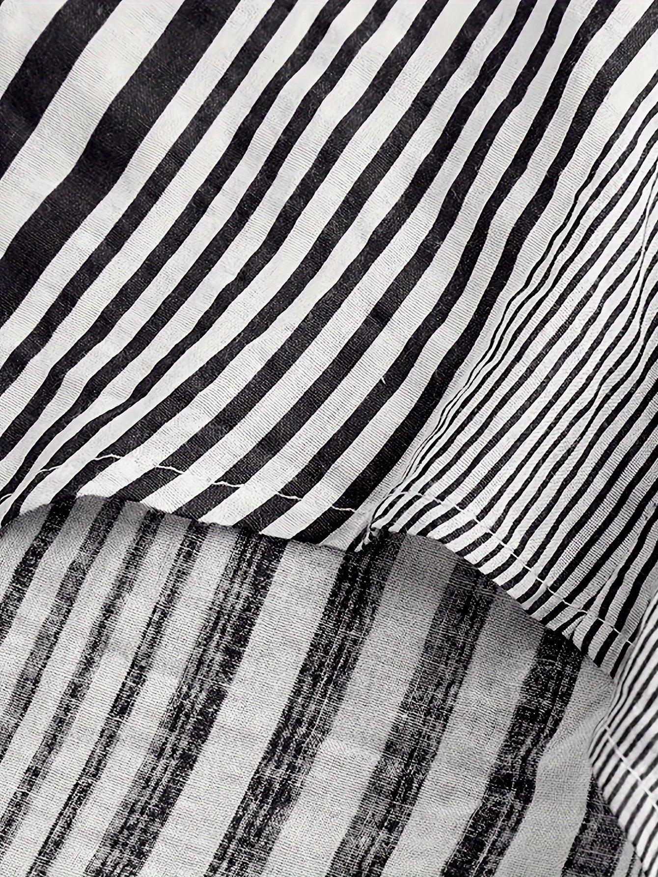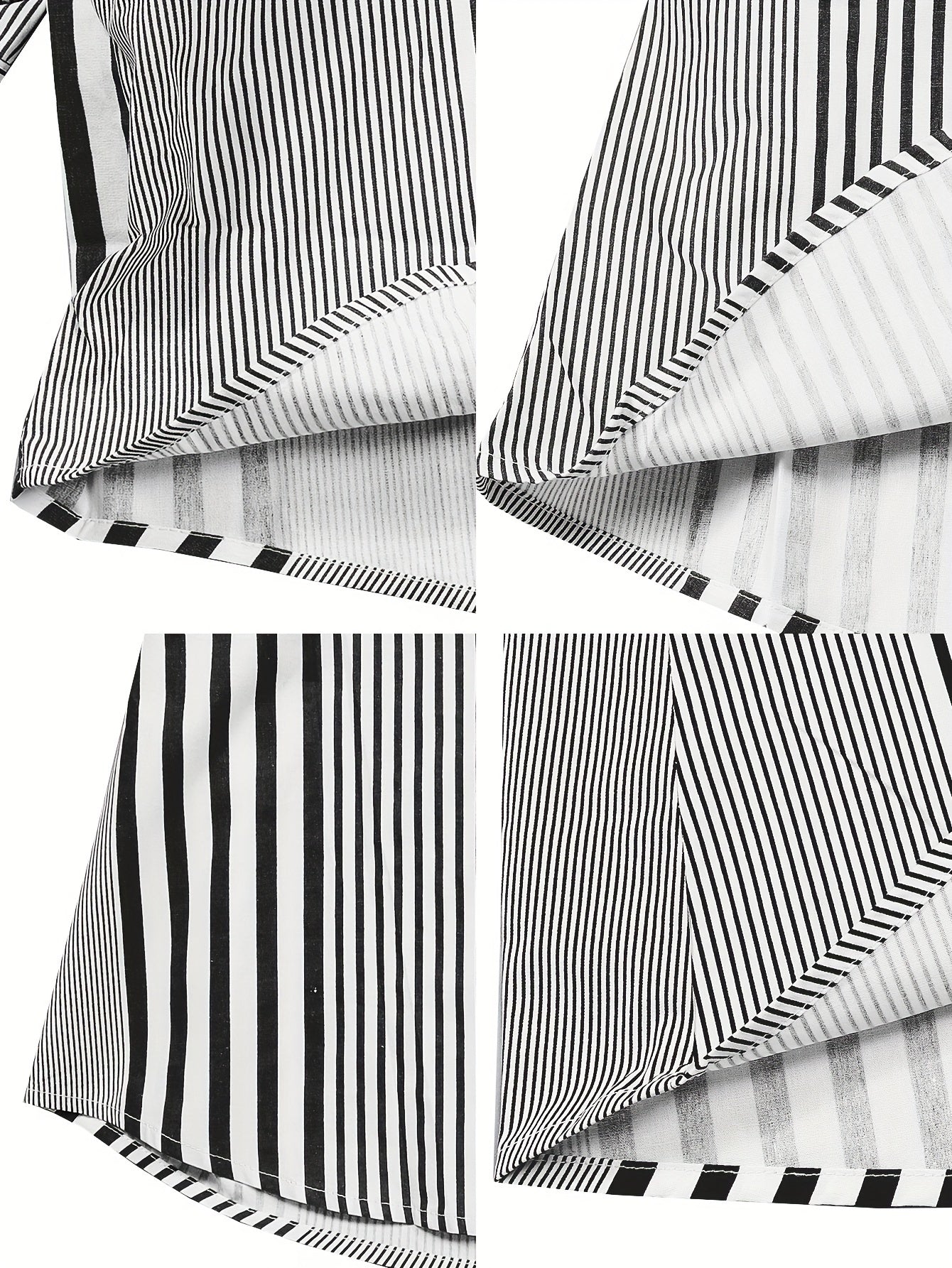 Blusa casual de rayas para mujer de tallas grandes con botones y mangas enrollables