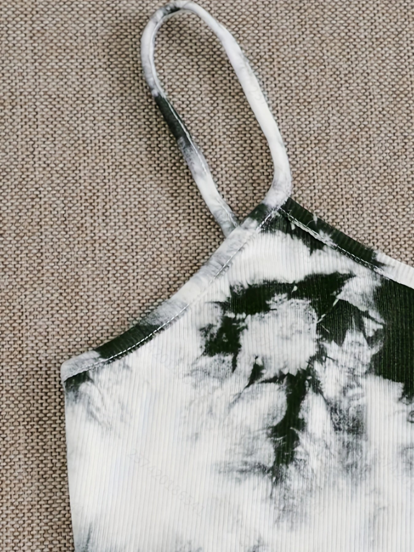 Plus Size Women's Tie Dye Cotton Pajama Set V Neck Crop Top & Shorts