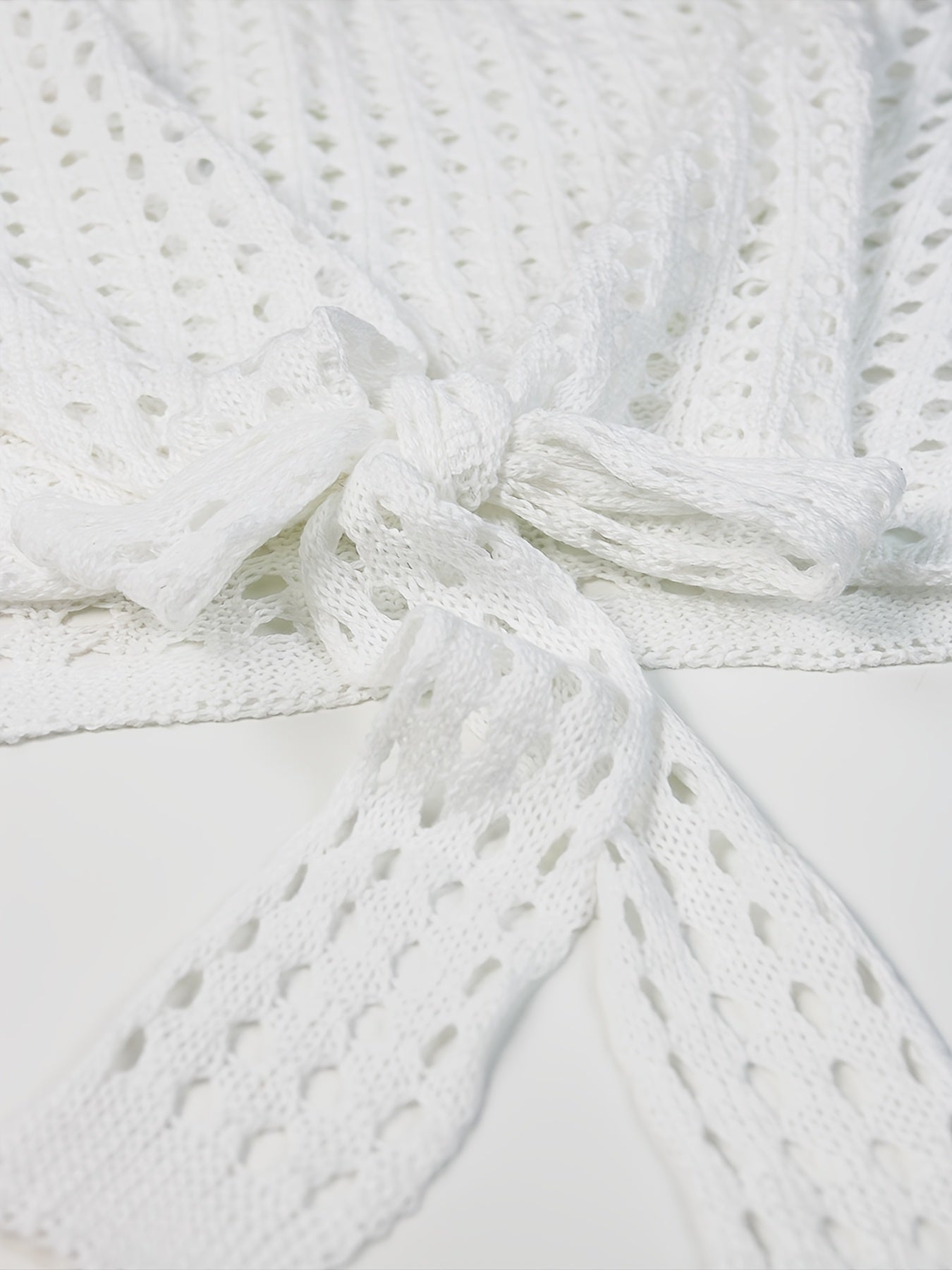Suéter de punto con escote en V para mujer talla grande con lazo y tela elástica
