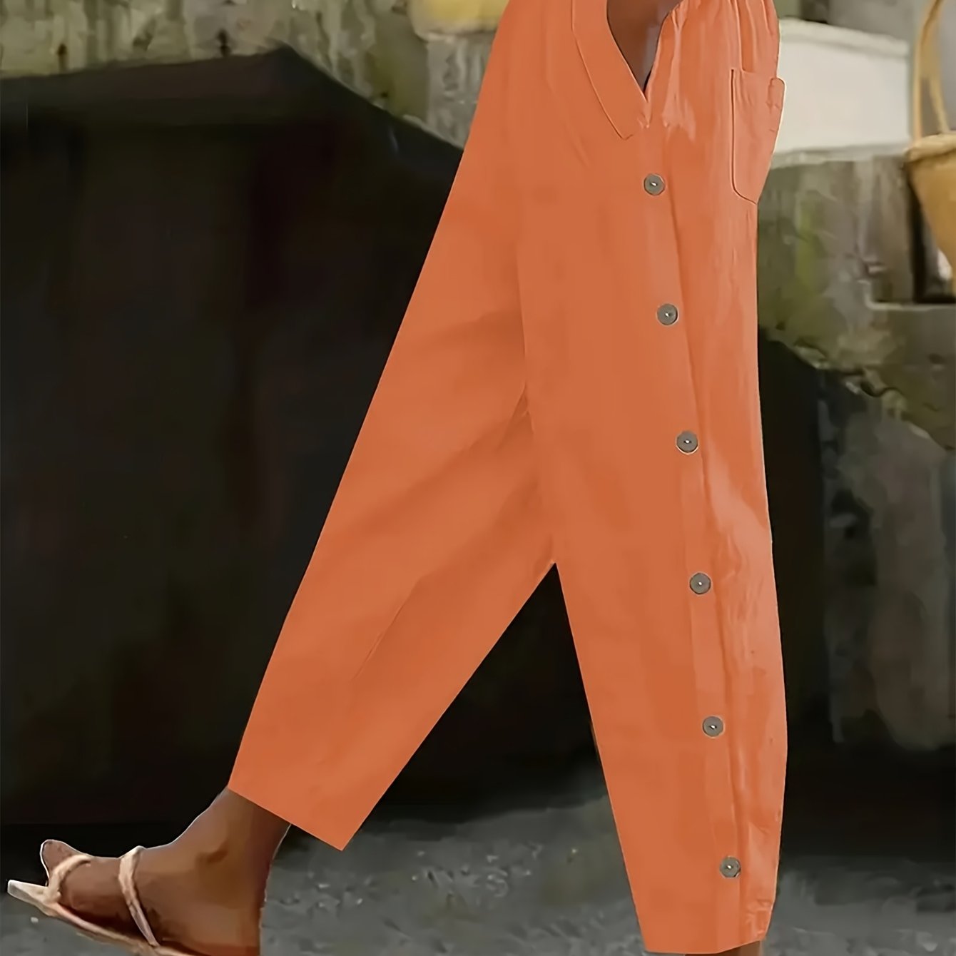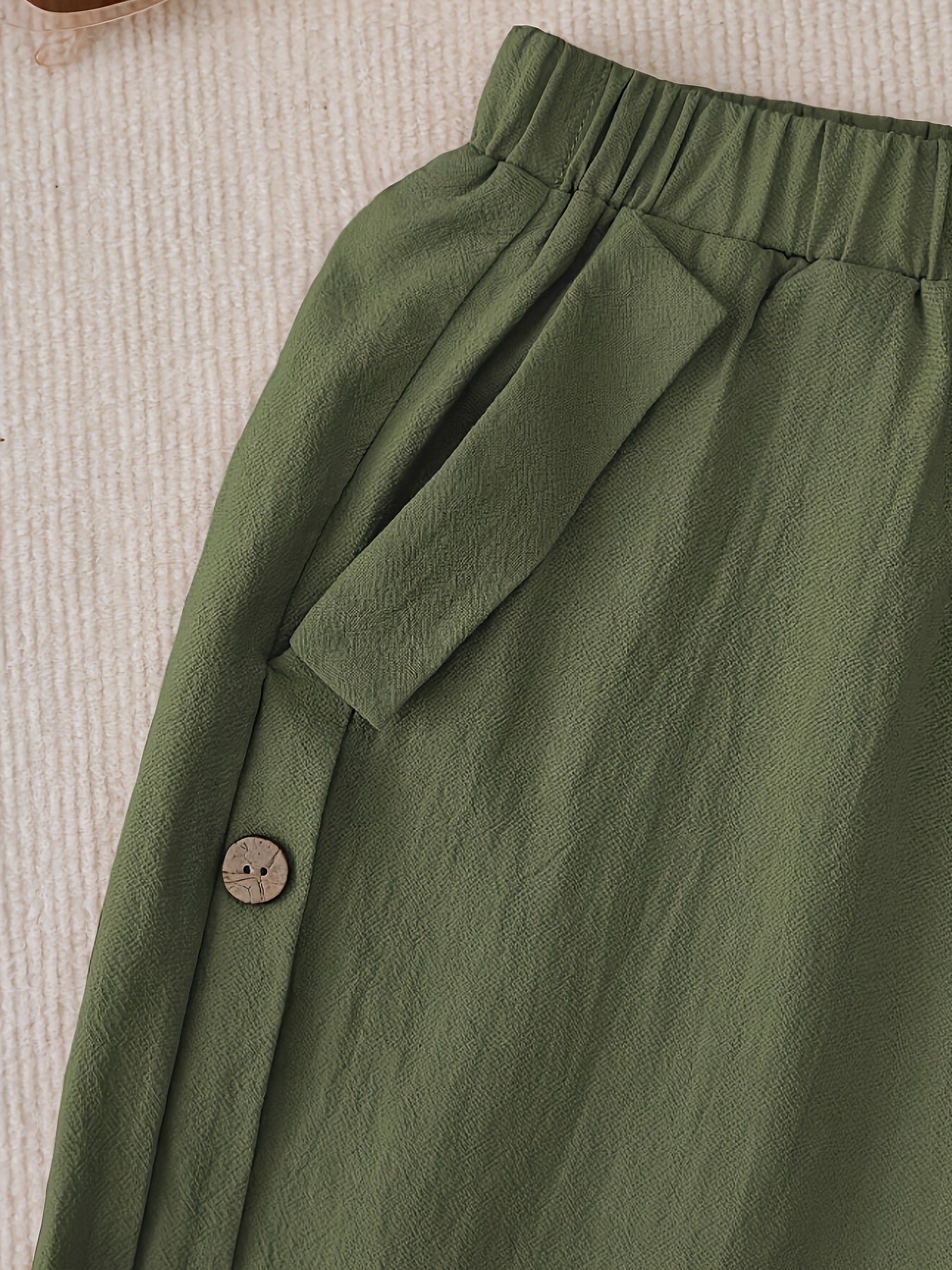 Pantalones de mujer de talla grande con pierna ancha y detalles de botones en gris claro