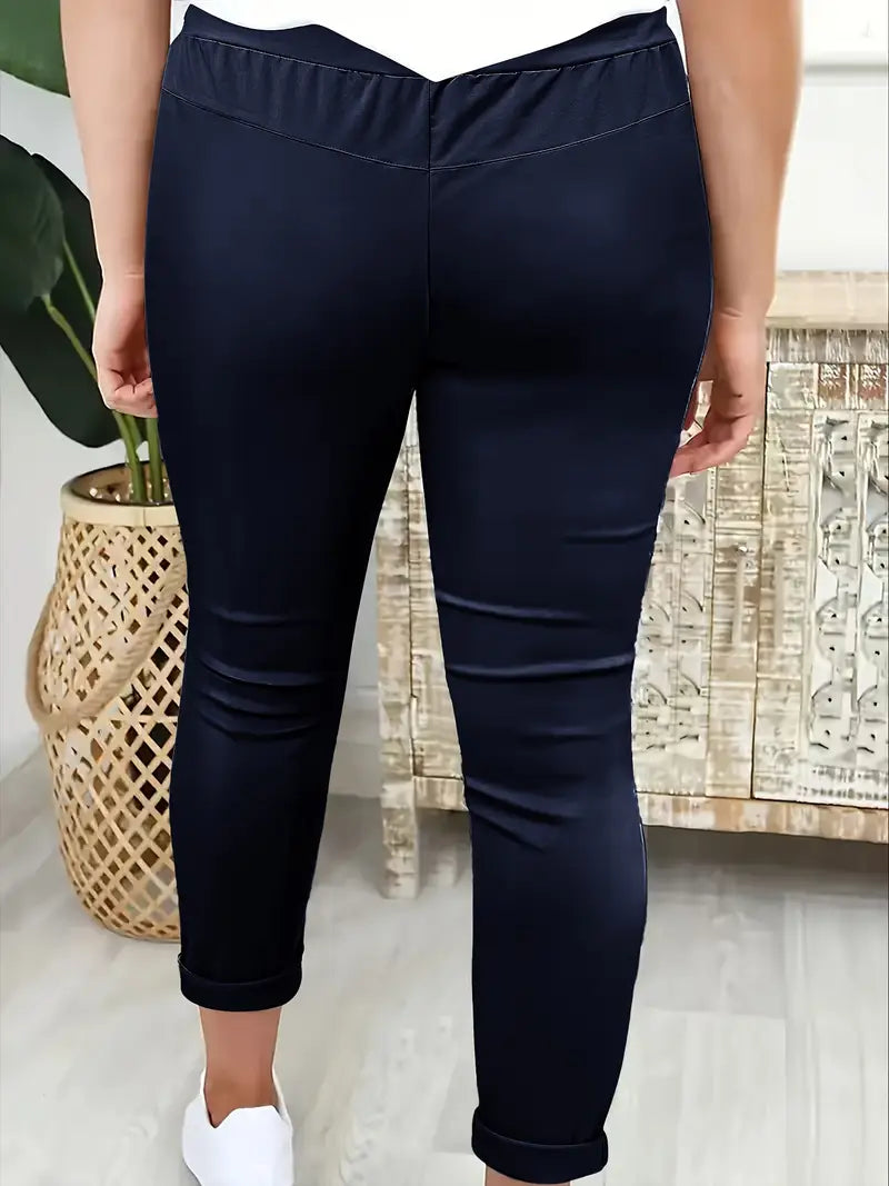 Pantalones largos ajustados para mujeres talla plus, casual, negros