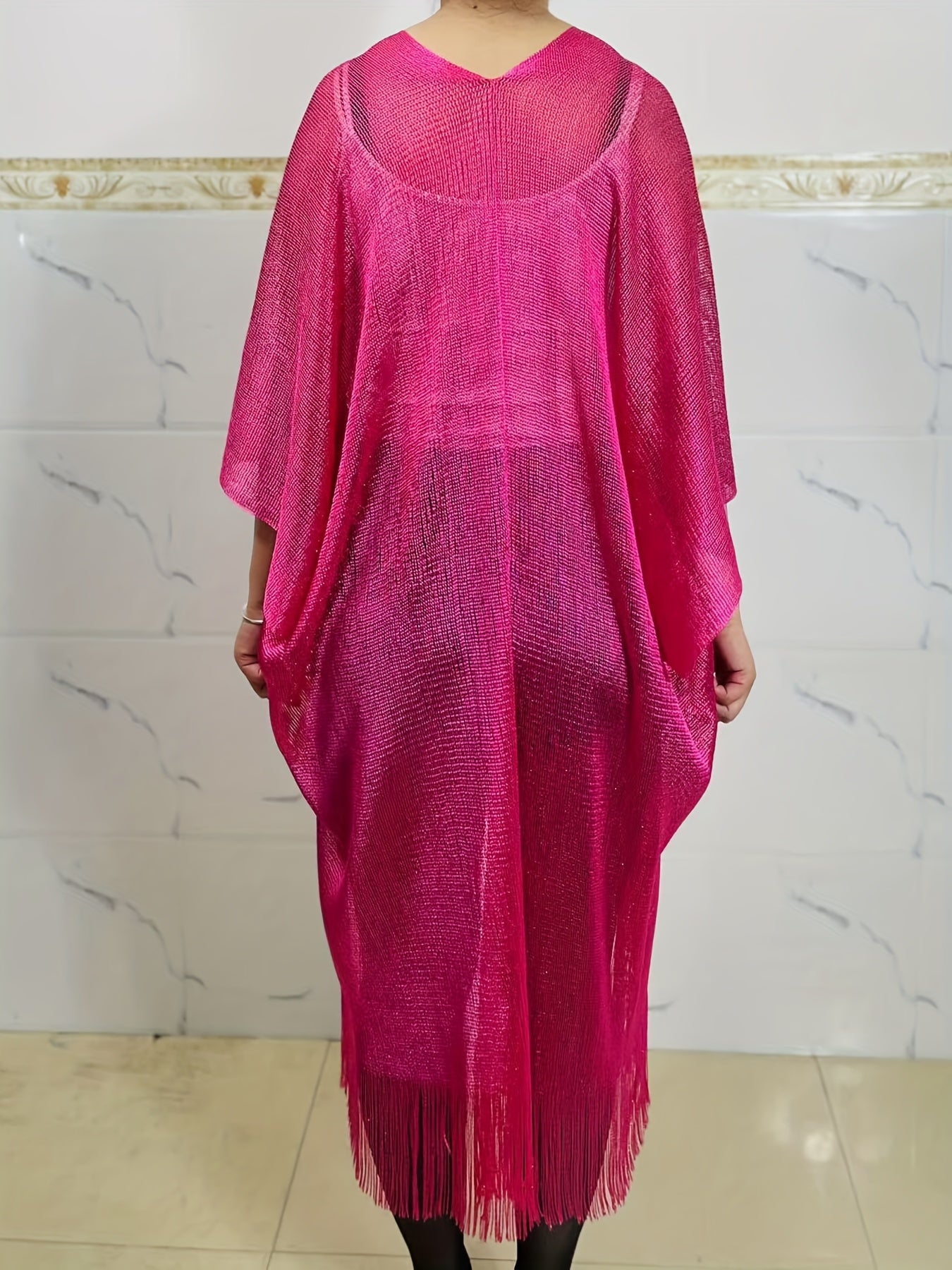 Chal de mujer de talla grande con flecos rosa, ligero, para verano y playa