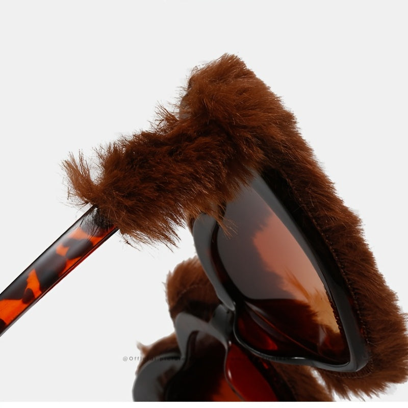 Gafas de fiesta con marco de felpa en forma de corazón para mujer