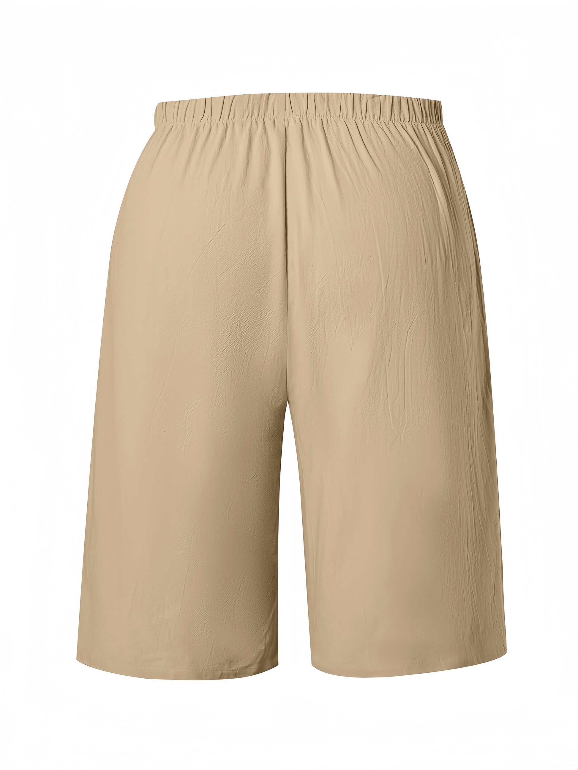 Pantalones cortos casuales de poliéster de talla grande para mujer con cordón falso y corte recto