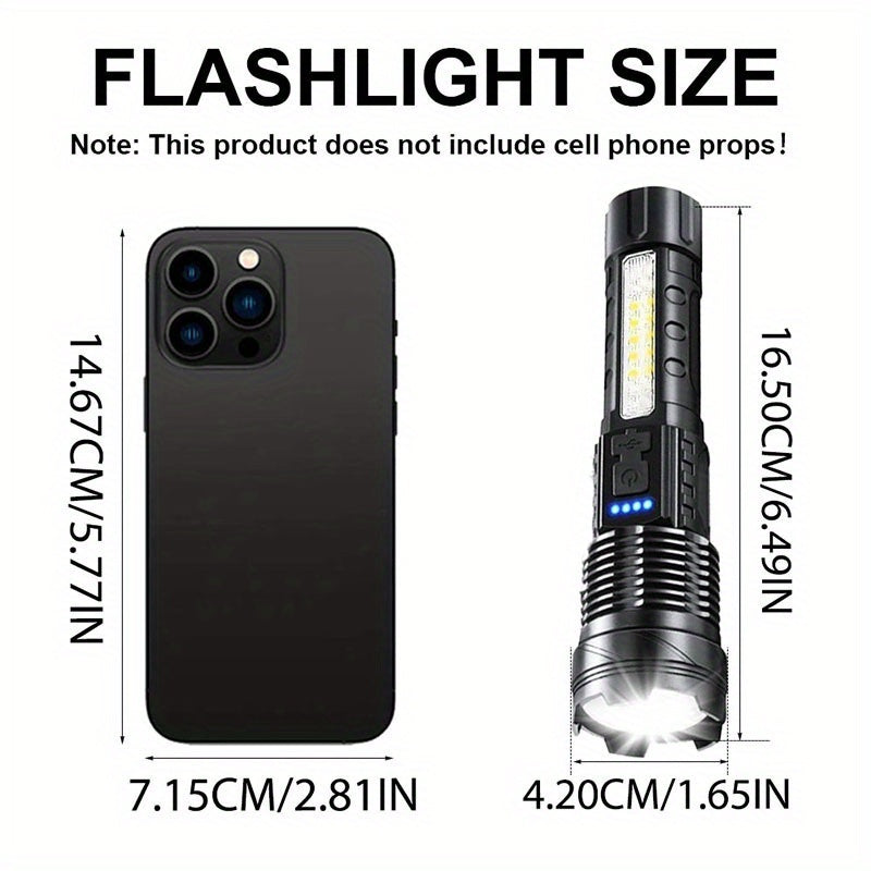 Linterna LED recargable con haz ajustable para acampar, senderismo, pesca y correr