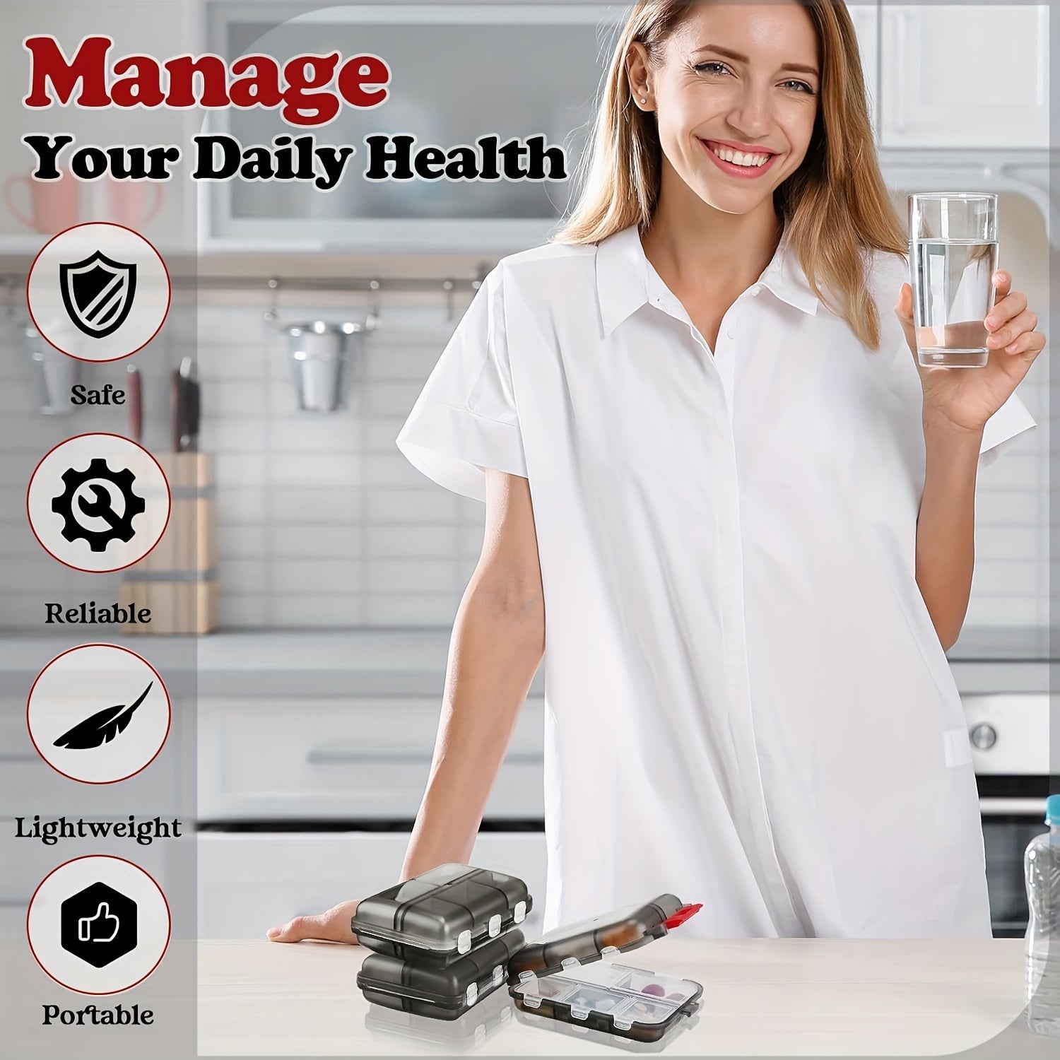 Organizador de pastillas de doble capa con 10 compartimentos y tapas individuales para viajes