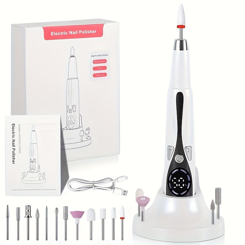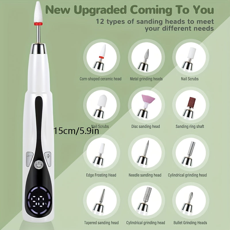 Pulidor de uñas giratorio de alta velocidad portátil con 3 cabezales ajustables y 12 opciones de lijado