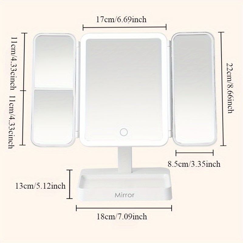 Espejo de maquillaje LED portátil con batería recargable de 2000mAh y luz ajustable