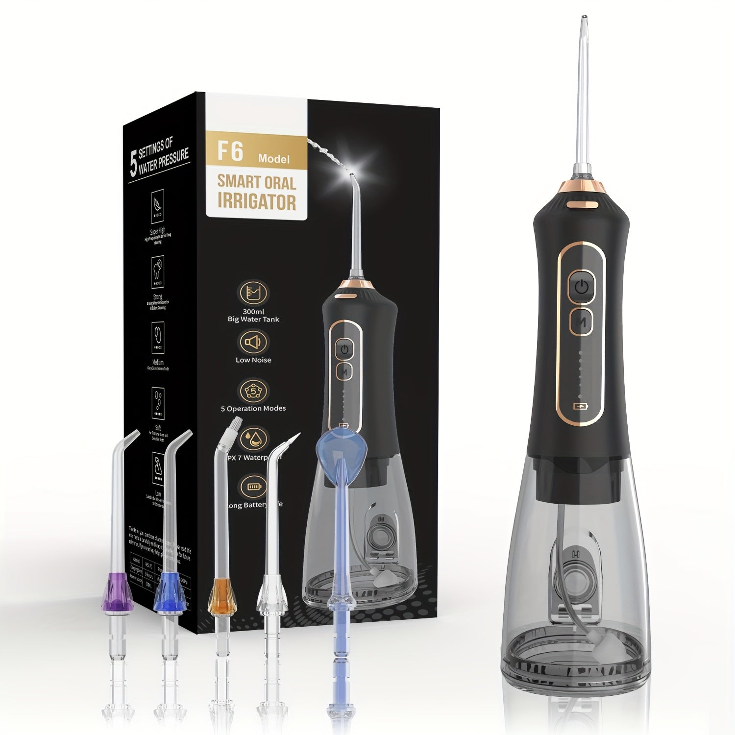 irrigador de agua recargable portátil con 5 modos y boquilla rotatoria