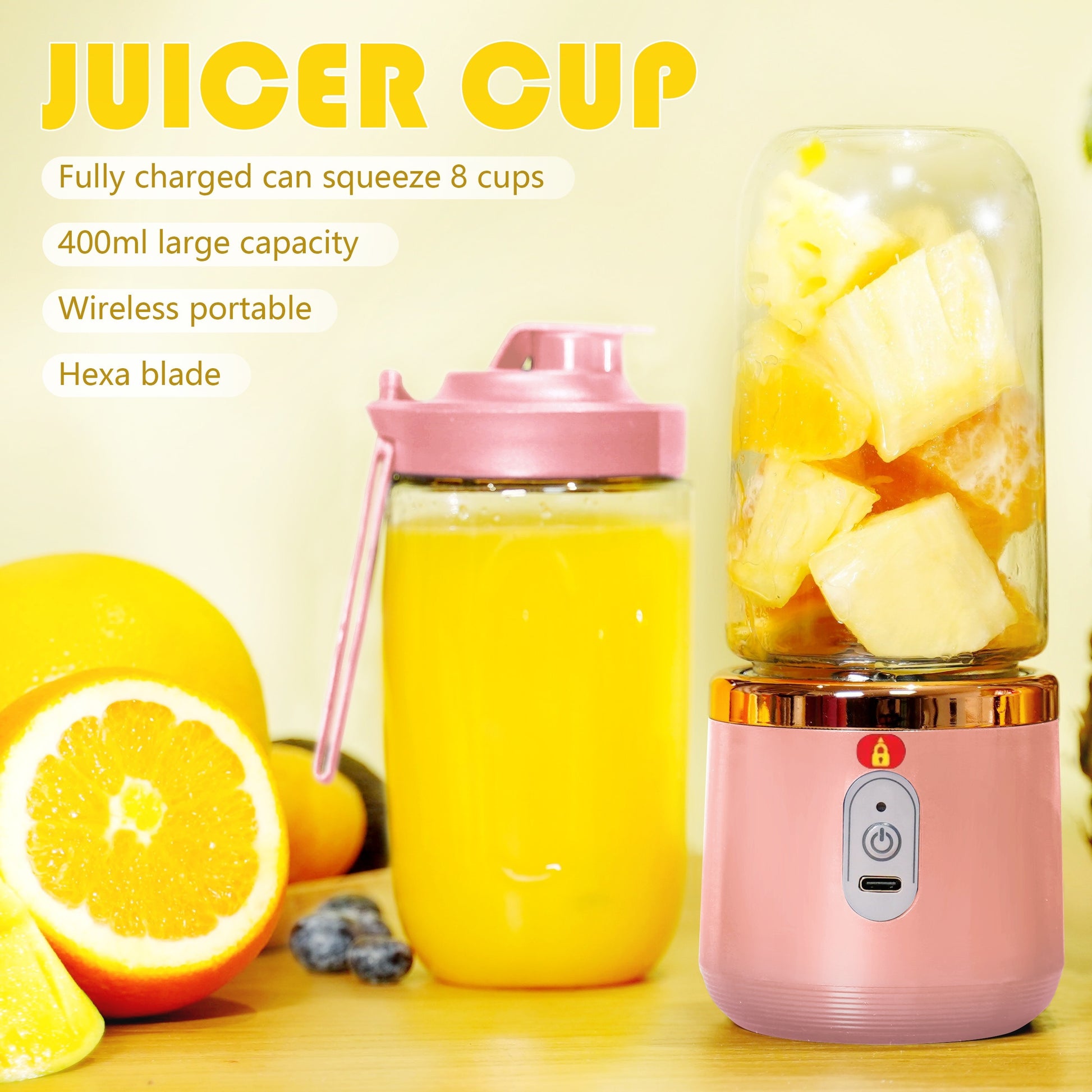 Exprimidor portátil inalámbrico con 6 cuchillas, 400 ml, ABS de grado alimentario, triturador de hielo