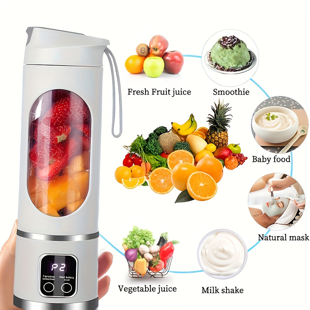 Licuadora portátil recargable por USB con pantalla LED, de grado alimentario ABS, compacta para batidos