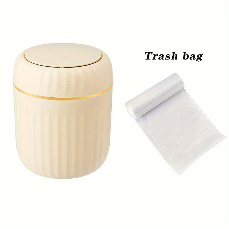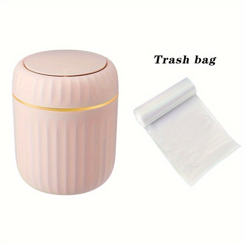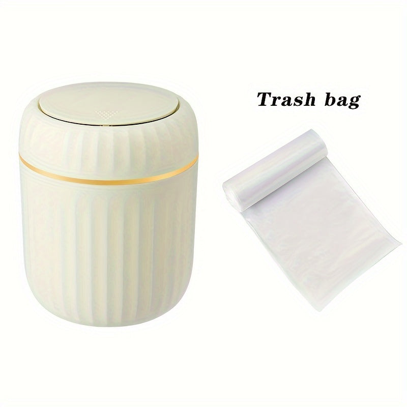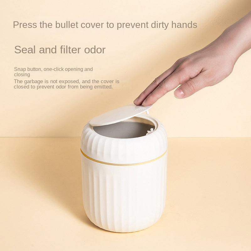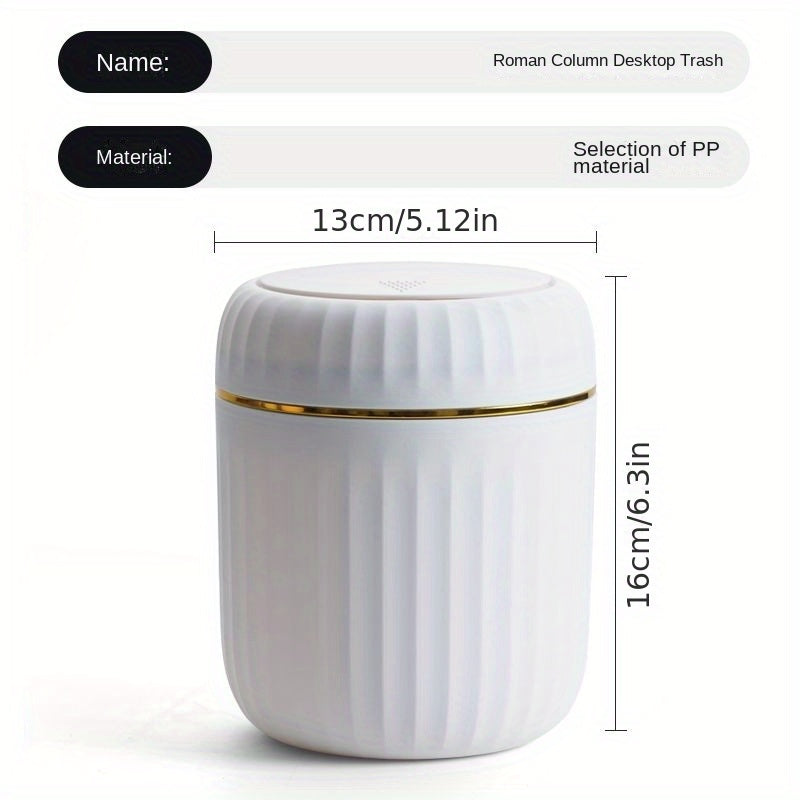 Cubo de basura de escritorio Press-Top con diseño de rayas romanas y tapa para oficina, sala de estar, estudio