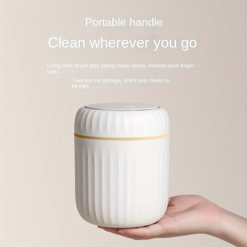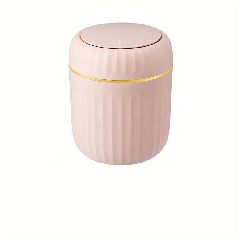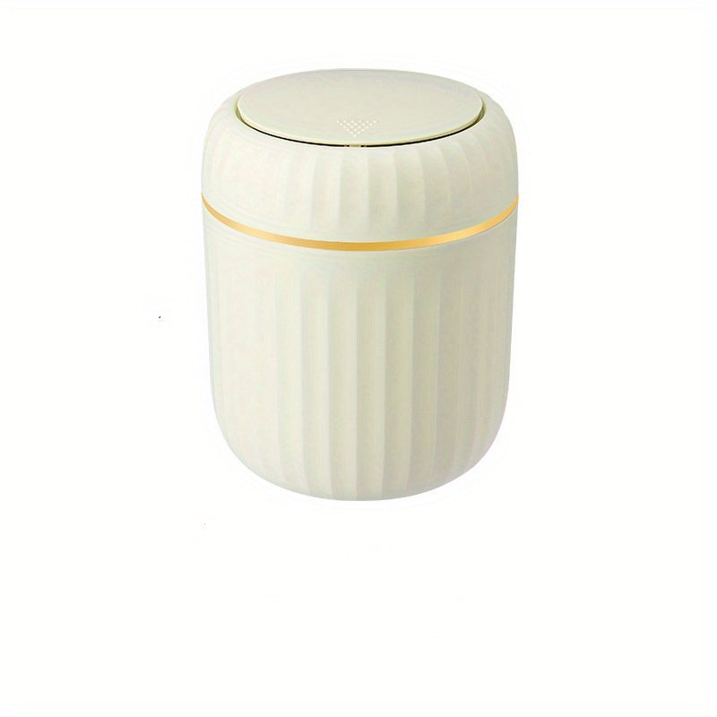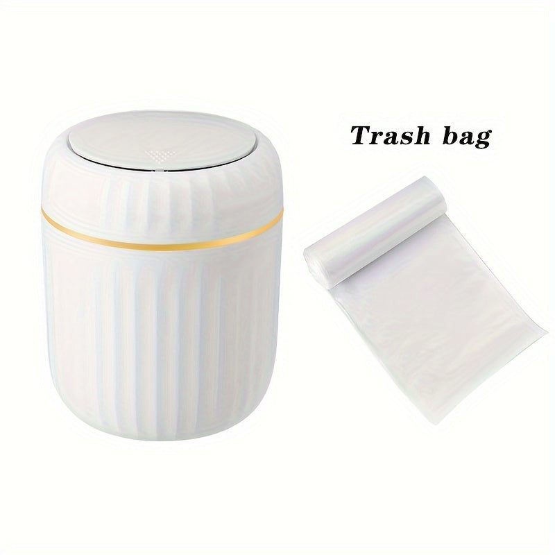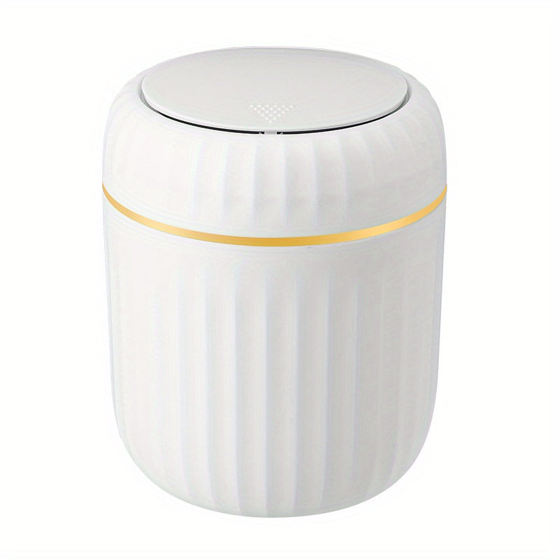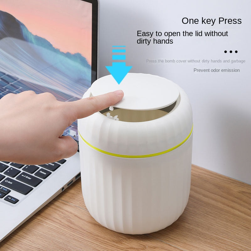 Cubo de basura de escritorio Press-Top con diseño de rayas romanas y tapa para oficina, sala de estar, estudio