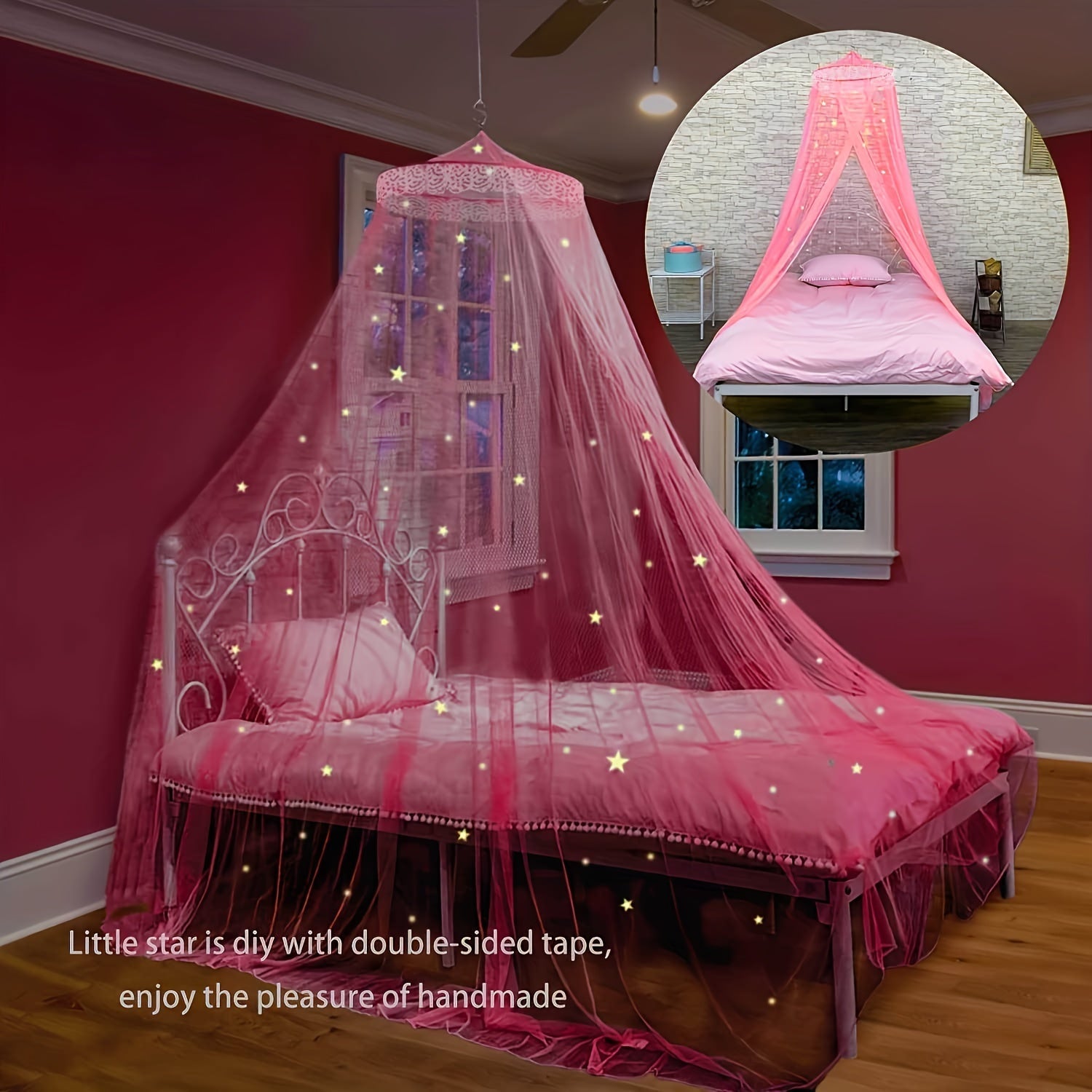 Mosquitero rosa para cuna de bebé con estrellas que brillan para decorar la cuna y el dormitorio