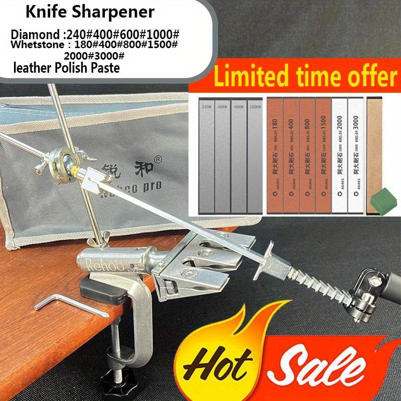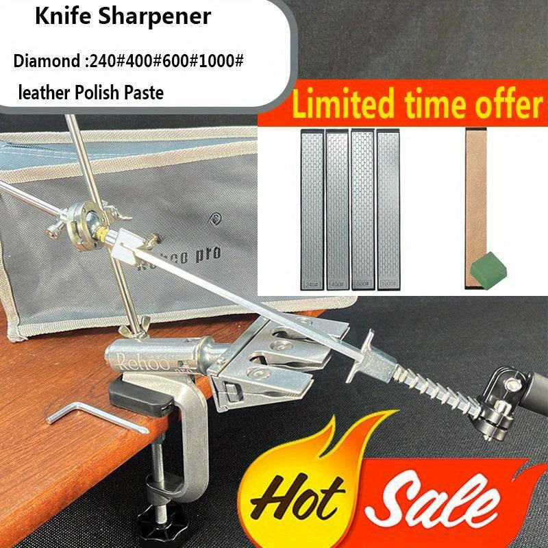 Afilador de cuchillos de ángulo fijo para cuchillos de cocina con pulidor de diamantes y piedra de afilar