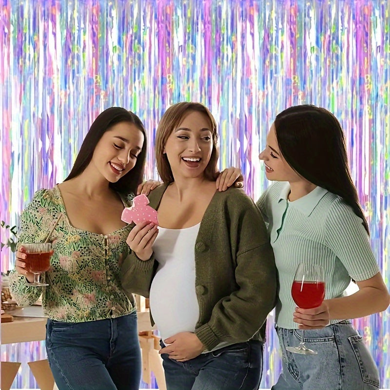 Cortinas de papel de aluminio con flecos morados 8.2x3.25 pies decoraciones para fiestas para vacaciones y eventos