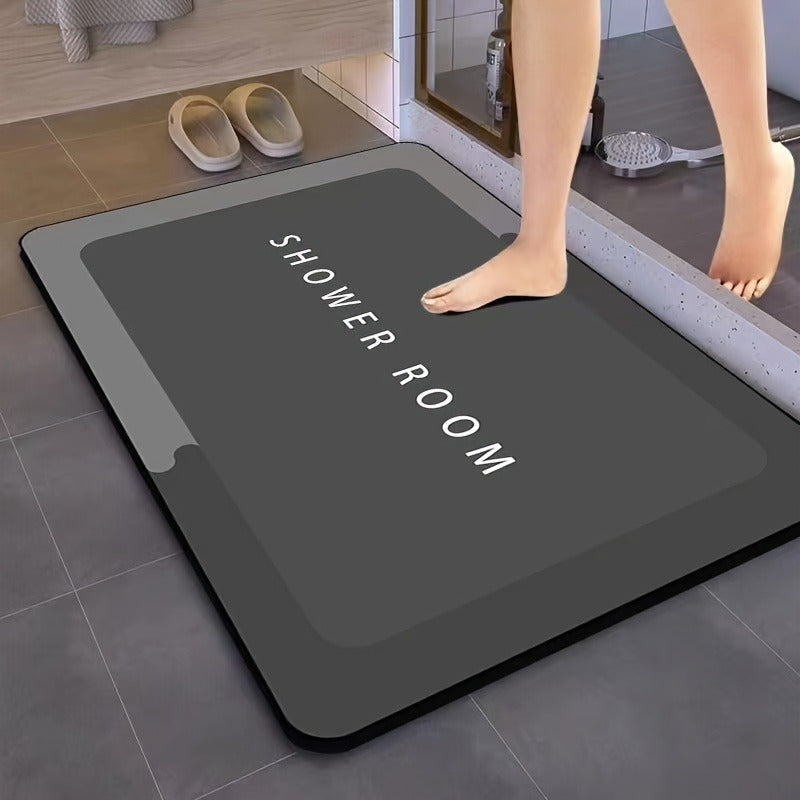 Alfombra de ducha de tierra de diatomeas negra antideslizante, de secado rápido y lavable para baño
