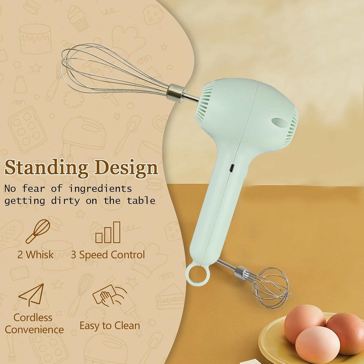 Batidora eléctrica de mano recargable, inalámbrica y portátil para hornear pasteles, galletas y muffins