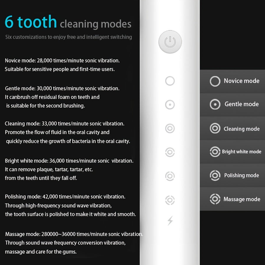 Cepillo de dientes eléctrico recargable para encías sensibles, 6 modos, 4 cabezales de repuesto