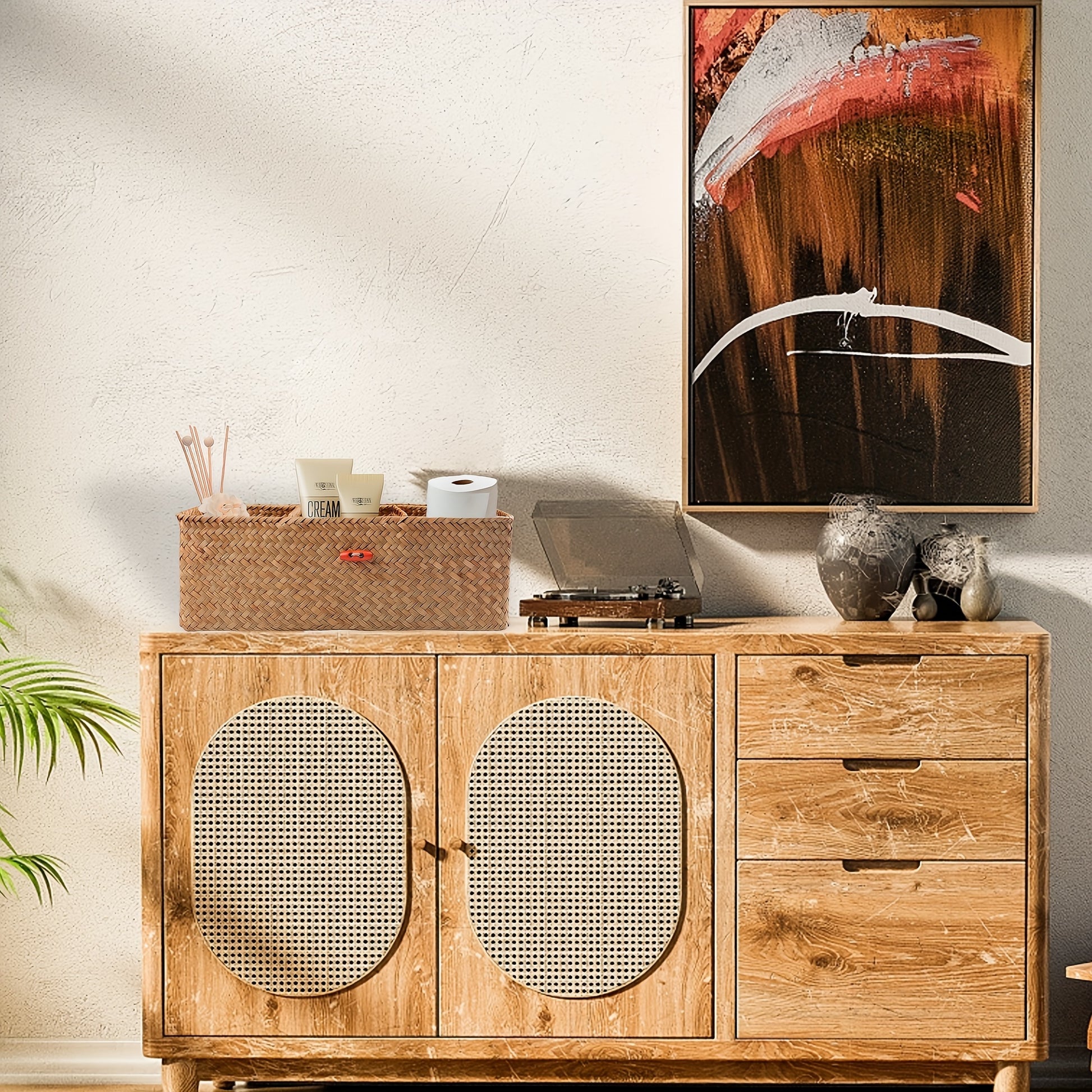 cesta de almacenamiento rectangular de hierba marina con tapa y compartimentos para juguetes, snacks y más