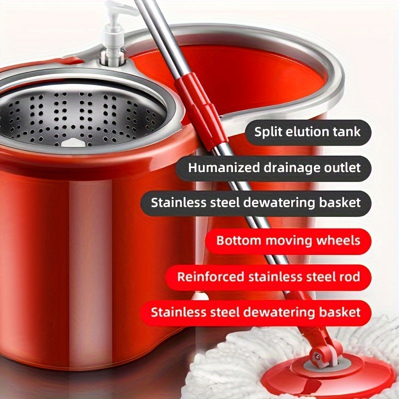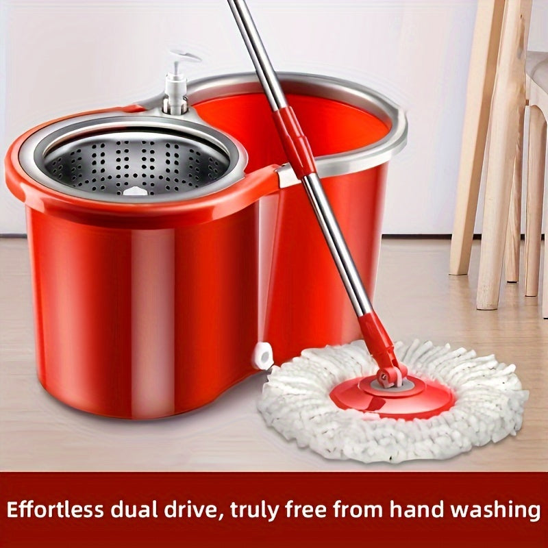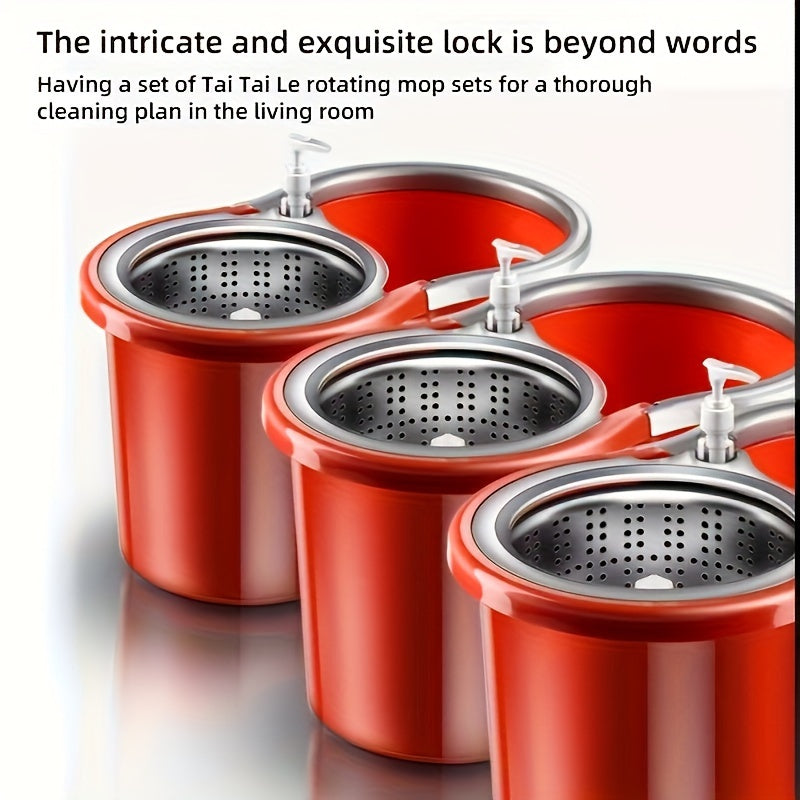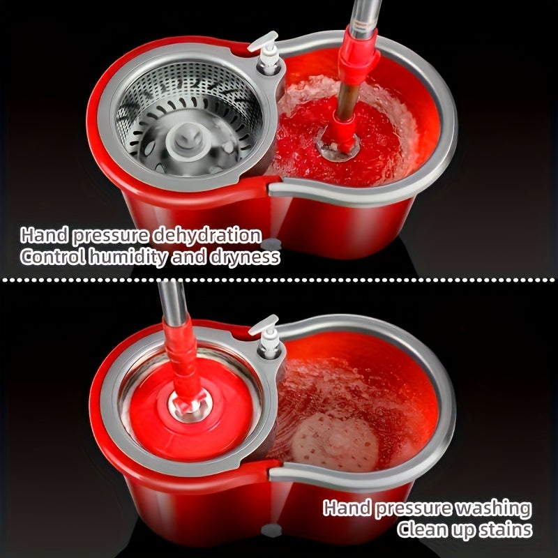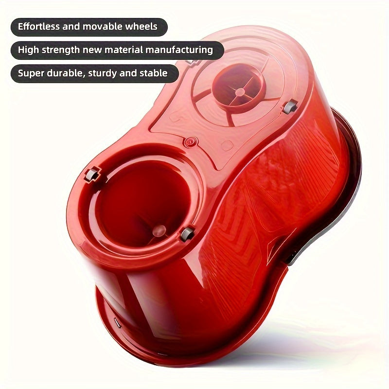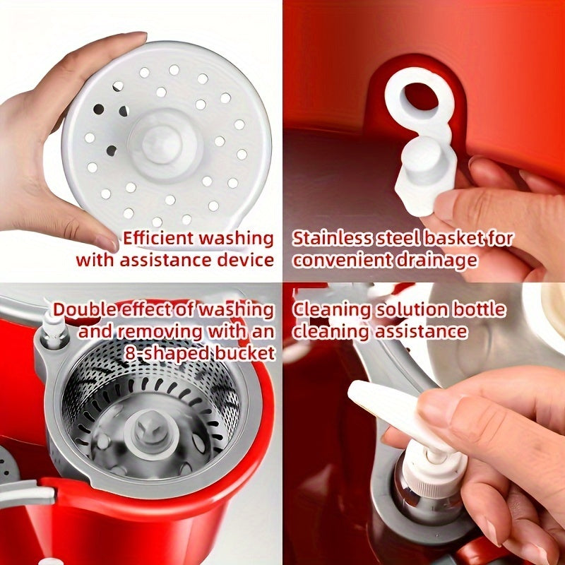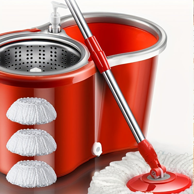 Juego de cubo y mopa giratoria roja con 3 paños de mopa para suelos de madera y limpieza en húmedo