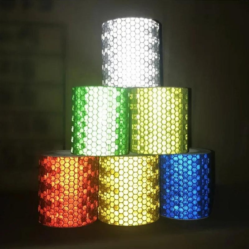 Cinta reflectante de seguridad con tira, película fluorescente de advertencia para bicicletas y coches