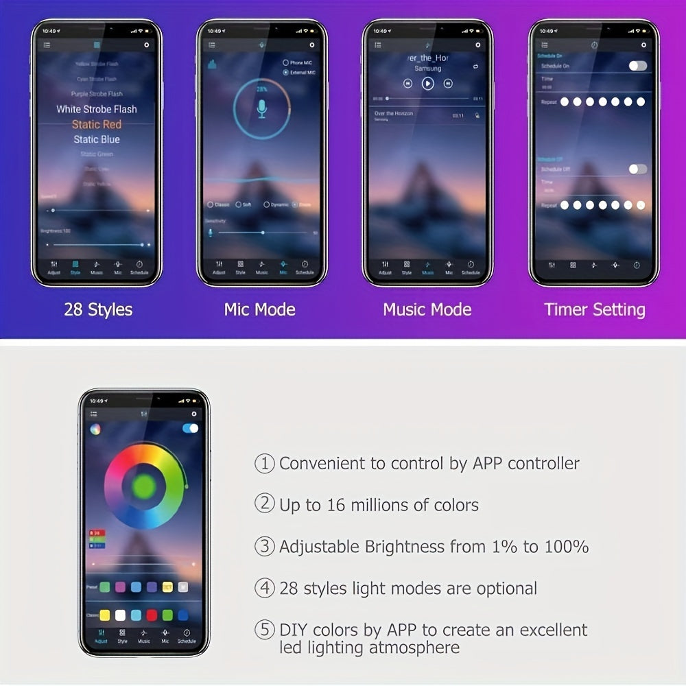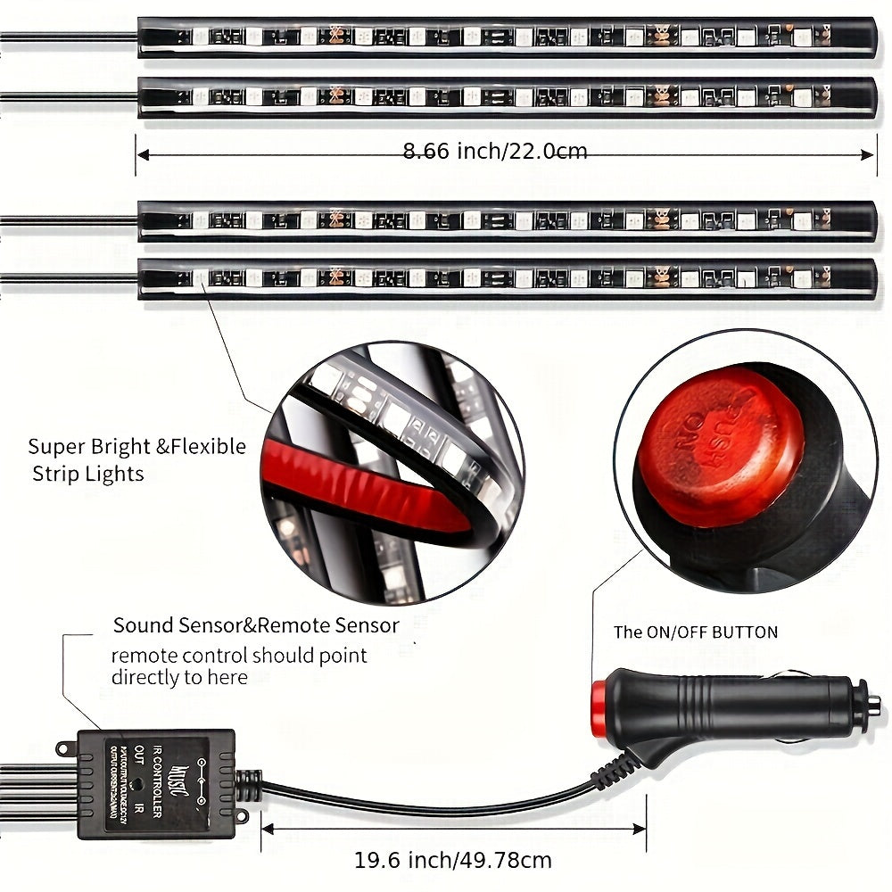 Kit de iluminación interior de LED RGB para coche con sincronización musical