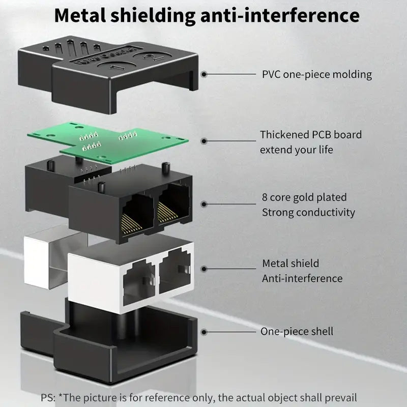 Adaptador Ethernet Cable divisor LAN 1 a 2 puertos negro y dorado compacto y resistente